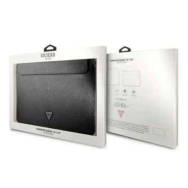 GUESS Saffiano kolmnurk metalllogo arvutikott 13|14" must (GUCS14PSATLK)