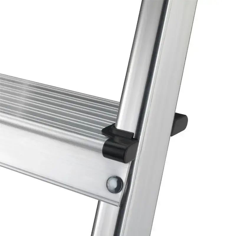 Safe aluminium ladder from HAILO with multifunctional shelf-tray and HAILO patented crease protectionThe ladder can be equipped with HAILO Easy Clix linings (optional accessory)Multifunctional storage tray - shelf on which you can place tools, small items, paint cans while you are on the ladderNon-slip feet - 100% gripPatented HAILO crease protection DBP. DBGM.Secure high-tech riveted step connectionGalvanised steel platform with anti-slip groovingAluminium steps with anti-slip groovingMaximum lifting capacity: 150 kgSteps: 5Working height: max 307 cmWeight: 4,6 kg