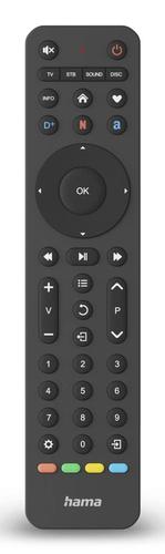 FSC-certified: the paper and cardboard used in our packaging comes from sustainable forest management - enabling us to take a resources-sparing approach to the raw material of woodHama 00221053. Brand compatibility: Universal, Remote control proper use: TV, Interface: IR Wireless. Number of devices supported: 4, Maximum range: 10 m. Input type: Press buttons, Buttons quantity: 43