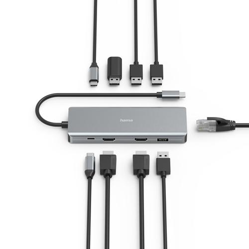 High-quality materials and workmanship guarantee excellent transmission qualityHama CONNECT2Media. Host interface: USB Type-C, Hub interfaces: HDMI, RJ-45, USB 3.2 Gen 1 (3.1 Gen 1) Type-A, USB 3.2 Gen 2 (3.1 Gen 2) Type-C. Data transfer rate: 5000 Mbit/s, Maximum resolution (HDMI): 4096 x 2160 pixels, Product colour: Anthracite. Ethernet interface type: Gigabit Ethernet, Ethernet LAN data rates: 10,100,1000 Mbit/s. Power supply type: USB. Width: 134 mm, Depth: 46 mm, Height: 15 mm
