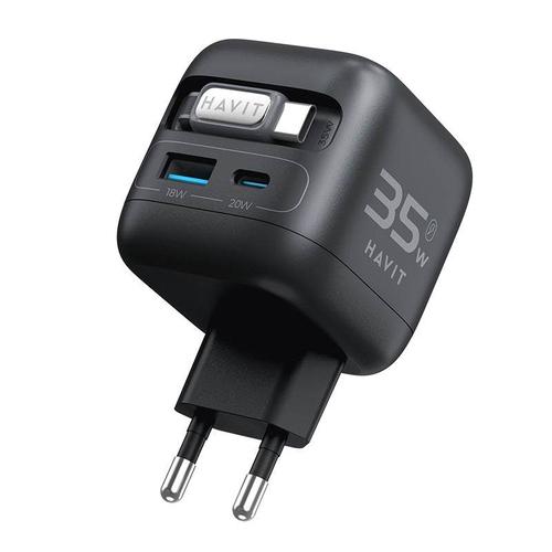 HAVIT UC250 A-EU – GaN reisislaadija pikendatava kaabliga (must)