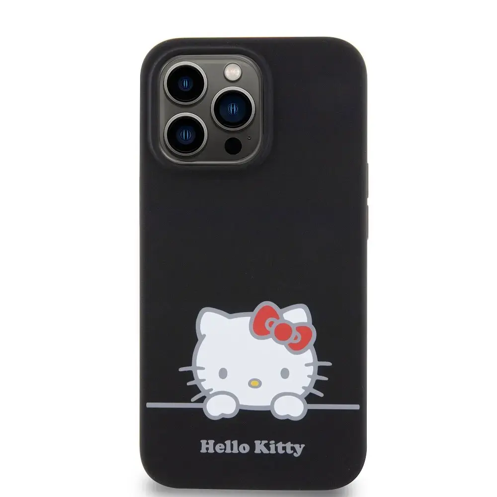 Hello Kitty Vedela silikoonist unistusliku logoga ülekatte iPhone'ile 13 Pro, must (HKHCP13LSKCDKK)