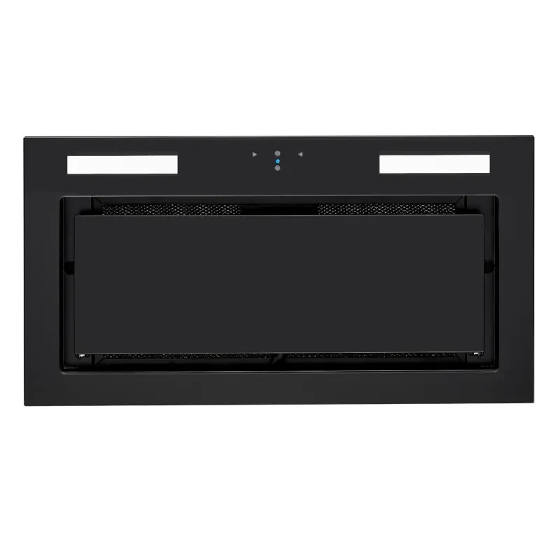 Õhupuhastaja esipaneel on kombineeritud musta klaasi ja värvitud roostevabast terasest korpusega. Täisintegreeritav õhupuhastaja paigaldatakse ülemise köögikapi sisse.