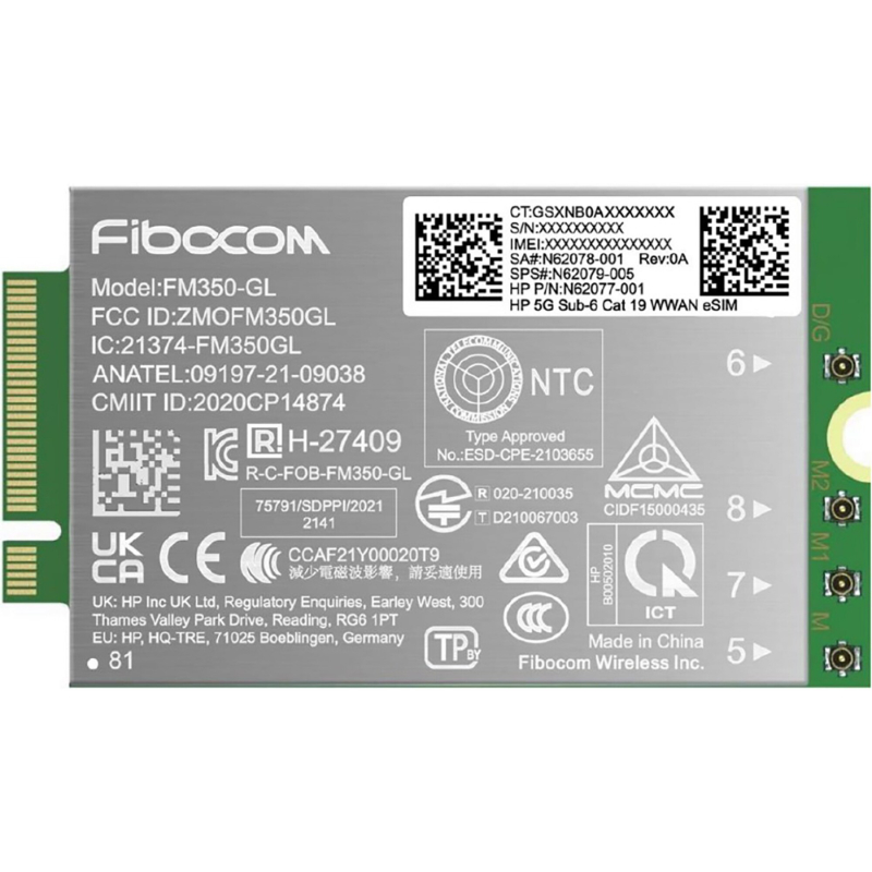 HEWLETT-PACKARD HP 5G moodem m.2 WWAN 4G/5G kuni 6 GHz FM350-GL mobiilne lairiba-rakukommunikatsioon (ühiltuv WWAN-valmis EliteBook 830 835 840 845 860 865 1040 G11, x360 G11, ZBook Firefly Fury Power 14 16 G11 G11A) (AM5R4AA)