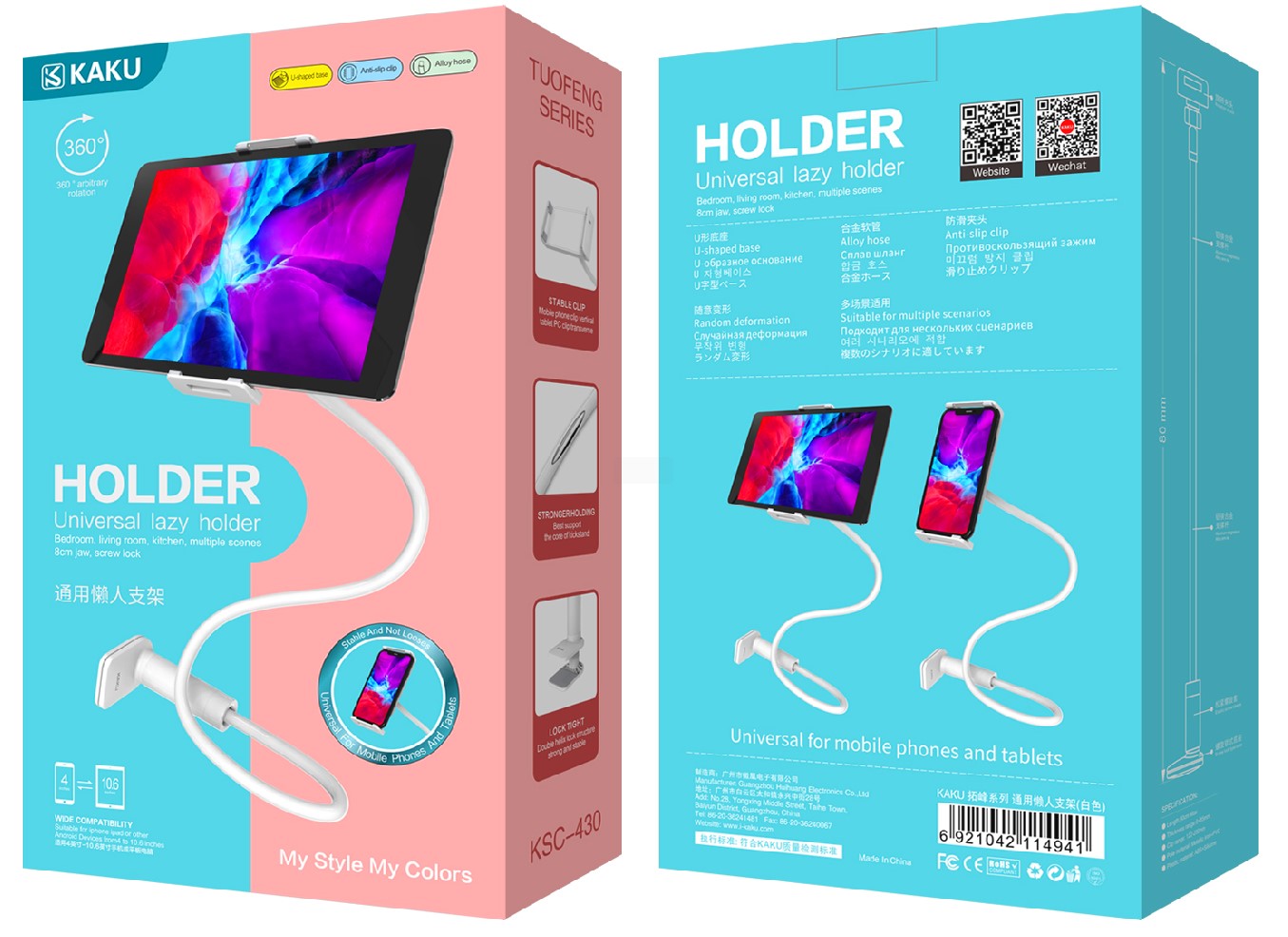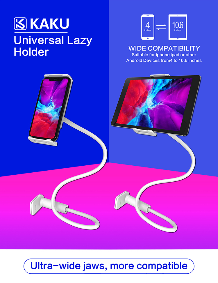 iKAKU KSC-430 Universal Desktop Mobile Phone and Tablet Holder with Clip White