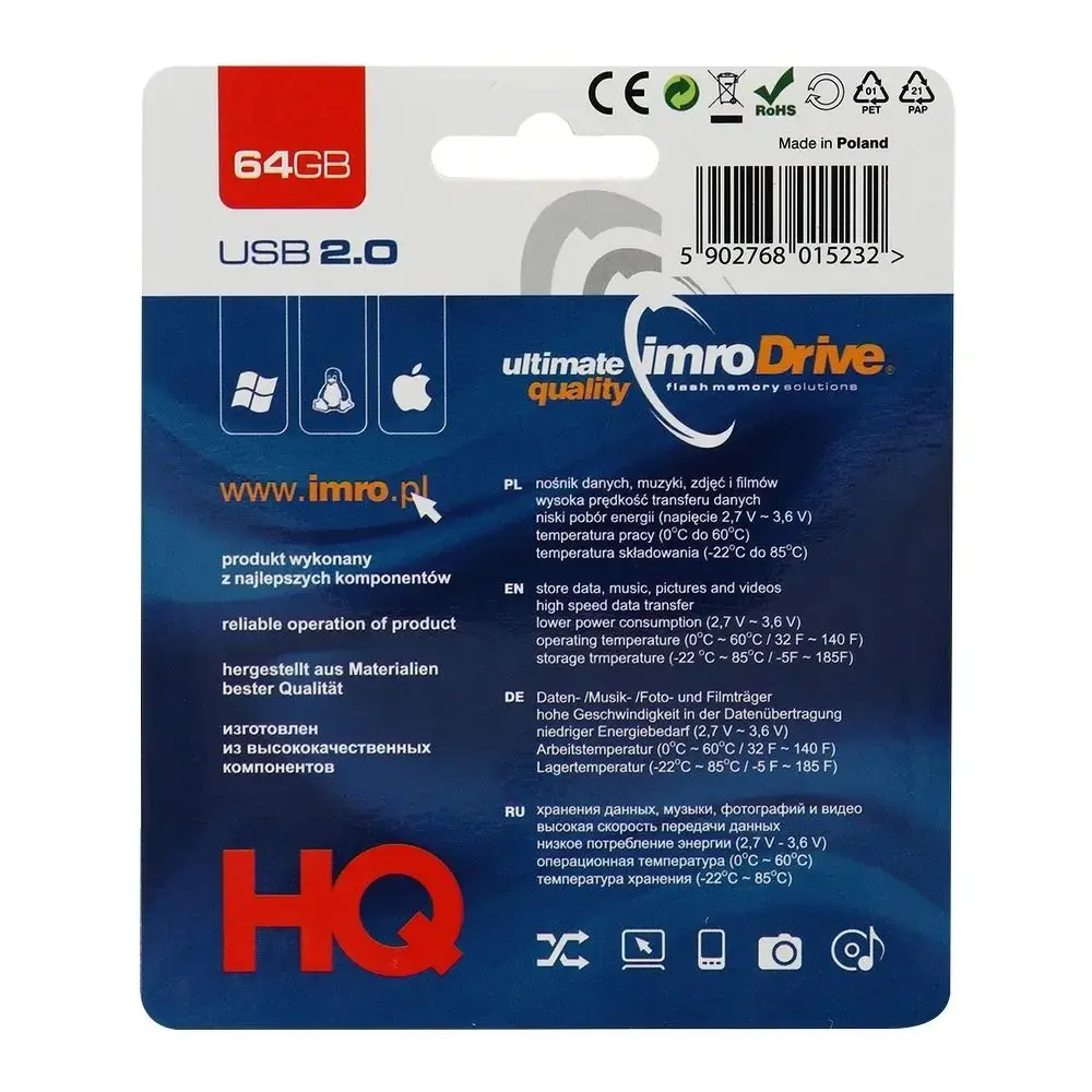 IMRO uSB-mäluseade BLACK 64GB USB2.0 (5902768015232)