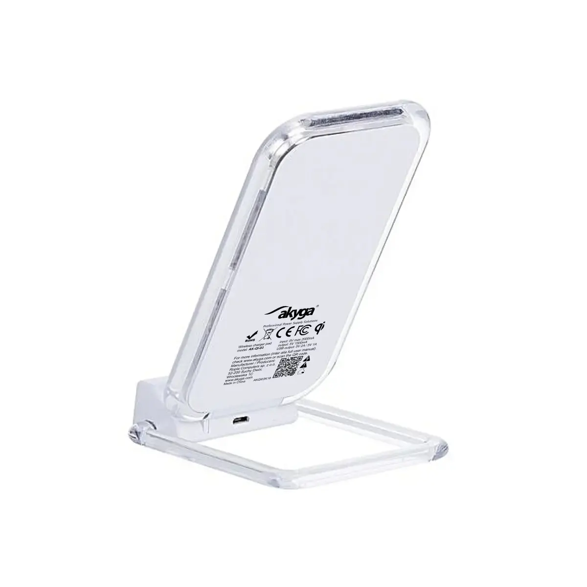 The Akyga® AK-QI-03 induction charger is an extremely convenient device to use. Its clever design makes it an exceptionally practical yet stylish accessory that looks great on your desk. What is more, the applied standard of wireless QI charging ensures not only freedom from unnecessary cabling, but also ease of use and versatility. The built-in induction charging module has three coils at different heights. This allows the charger to charge most commercially available telephones equipped with a QI adapter. This position of the coils allows you to charge the device in any position, both vertical and horizontal. In addition, the charger can also be used as a phone stand. This allows you to charge your device while watching a movie. At the same time, you don't have to worry about the cover on your phone because the charging range is 8 mm.