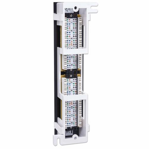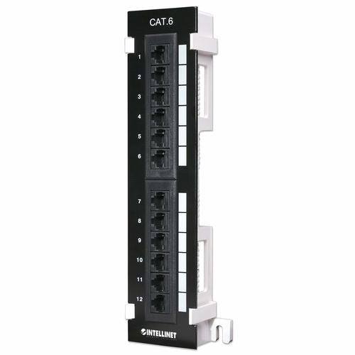 The backbone of your network is central to your organisation's success. Trust Intellinet Network Solutions to provide Patch Panels that maintain the integrity of your data. The Patch Panel enables you to quickly change the port assignment of any piece of equipment that's attached to your network. Our range of Patch Panels feature varying port densities across a complete range of specifications–from Cat5e to Cat6a in both Unshielded and Shielded varieties. All Patch Panels comply with current industry standards and are 19”-rack compliant.Intellinet Patch Panel, Cat6, Wall-mount, UTP, 12 Port, Black. Networking standards: IEEE 802.3, IEEE 802.3ab, IEEE 802.3u, Ethernet interface type: Fast Ethernet, Gigabit Ethernet, Connector(s): RJ-45. Product colour: Black, Mounting: Rack mounting. Compliance certificates: RoHS, Certification: UL E157358. Width: 82 mm, Height: 47 mm, Depth: 254 mm