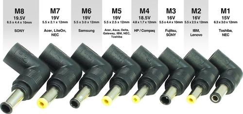 Almost every model can be connected (further adapters are optional available) due to the 8 included, changeable tips. With its flat design, the adapter fits in almost every Notebook bag.