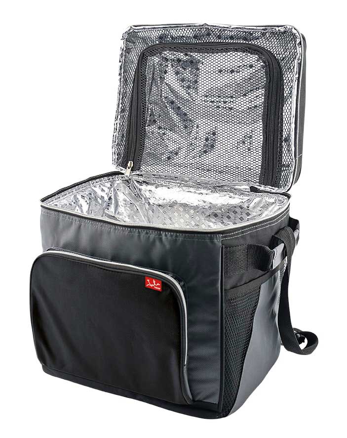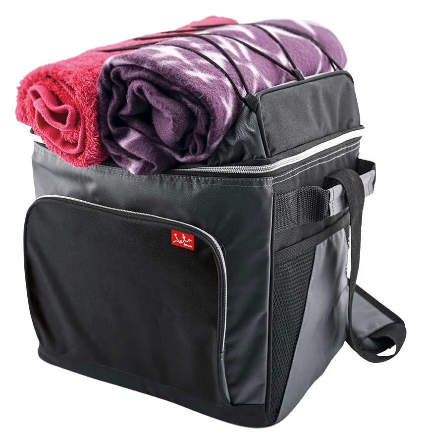 - Flexible cooling bag- Capacity 19,5 L- BPA free- 3 outer compartments + Adjustable elastic rope Technical details Colour of product: Black Pocket: Y Adjustable shoulder strap: Y Shoulder strap: Y Zipper closure: Y Weight & dimensions Volume: 19.5 L Width: 320 mm Depth: 260 mm Height: 340 mm Packaging content Quantity per pack: 1 pc(s) Features Suitable for bottles: Y