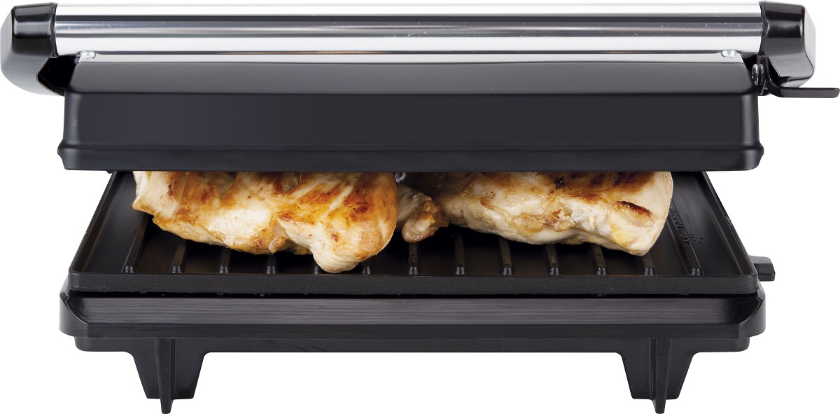 Mittepleekiv PFOA-vaba katte. Taldriku suurus: 230 x 145 mm. Libiseva hingedega süsteem. Ühtne röstimisrõhu. Valmestab kõiki liike kala ja liha. Soojuskindel käepide. Reguleerimisindikaator. Lukustusklamber. Pinge 230 V, võimsus 700 W.