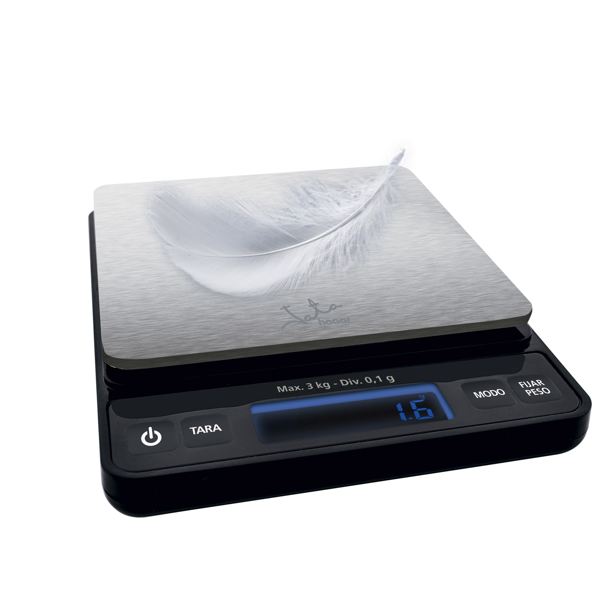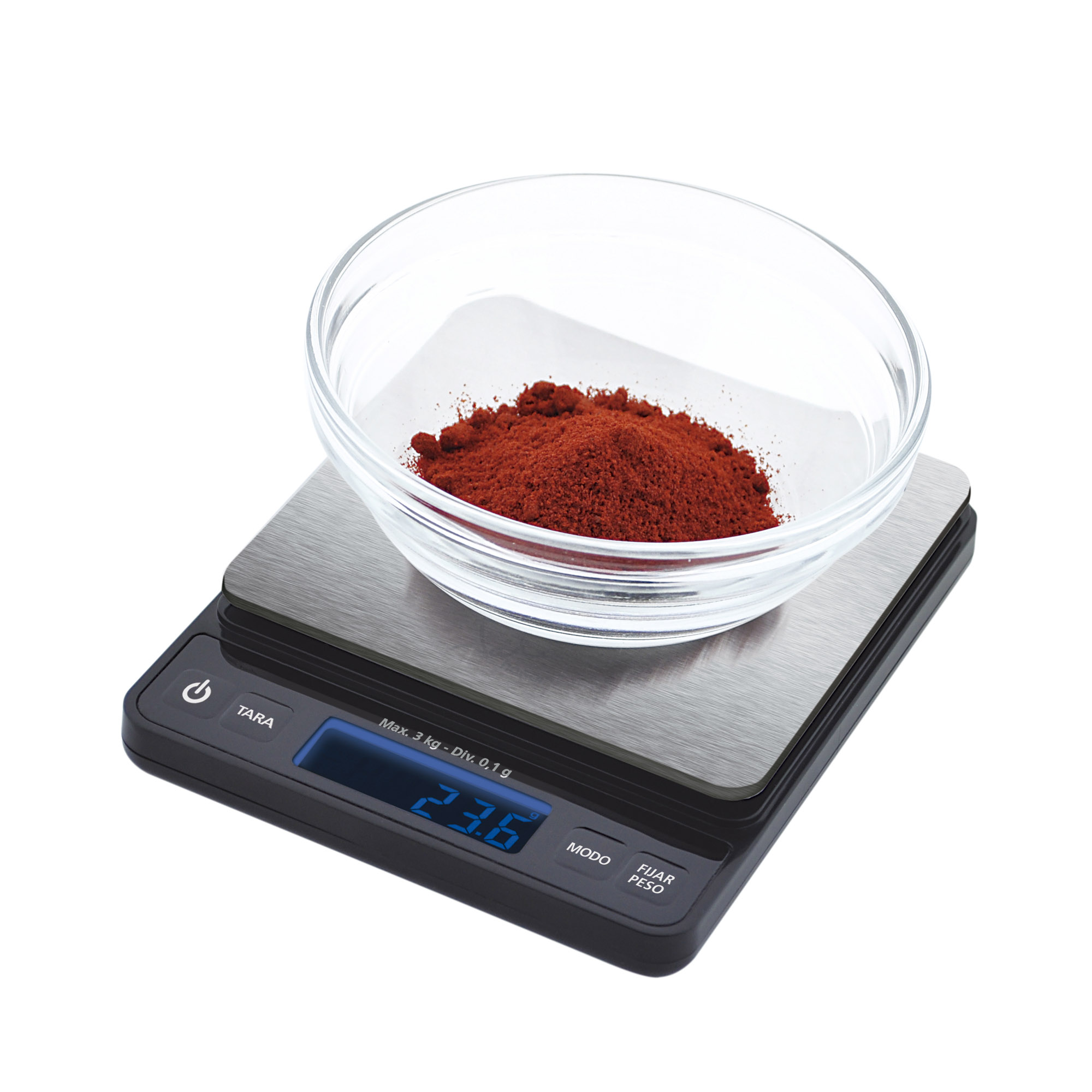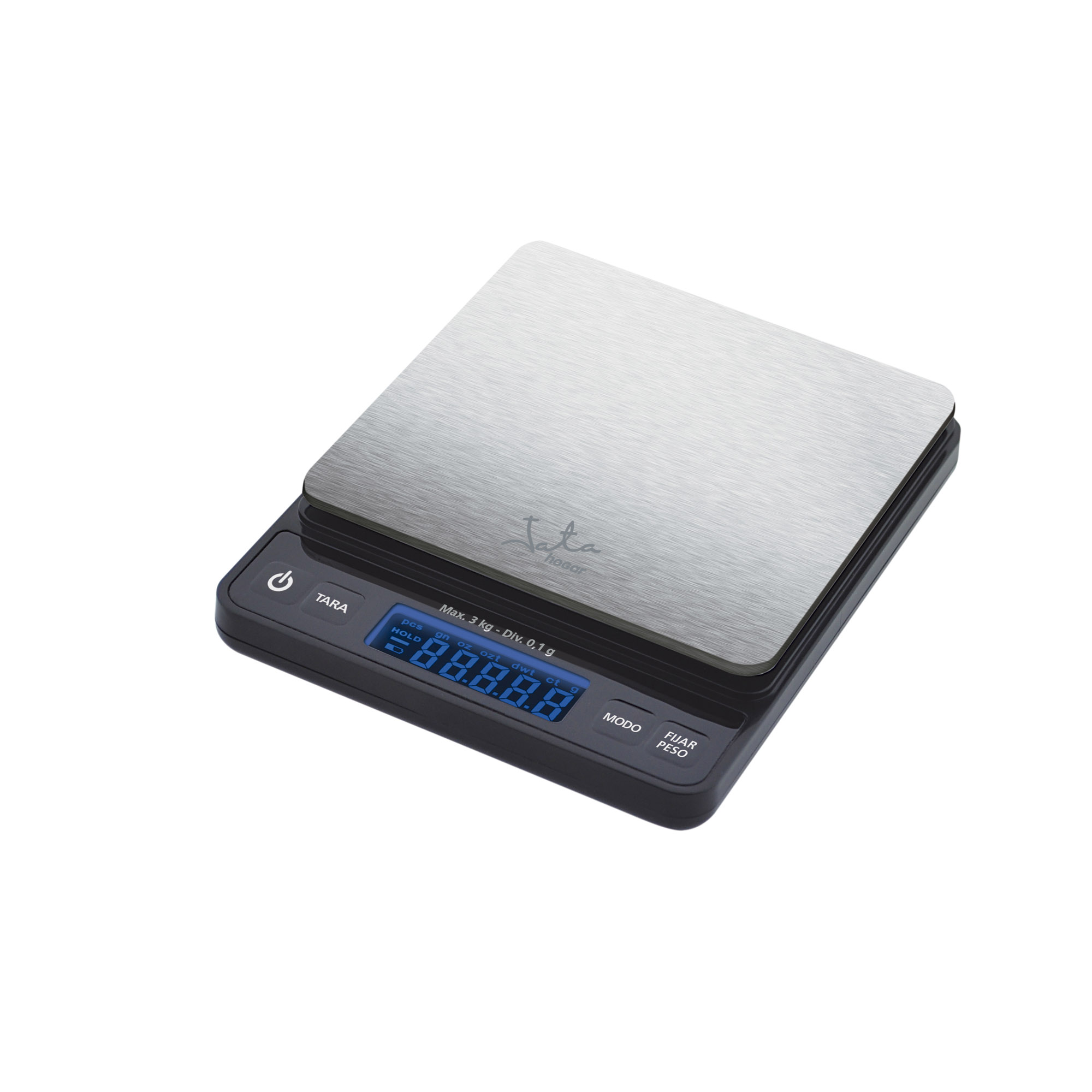 Capacity: 3 kg Alcohol content 0.1 g Stainless steel surface High weighing accuracy Self-luminescent LCD viewfinder Power button Calibration function Weighing lock function Automatic shut-off Tare function G/oz/ozt/ct/dwt conversion function 2 protective lids with tray function Powered by 2 x 1.5V "AAA" batteries (not included)