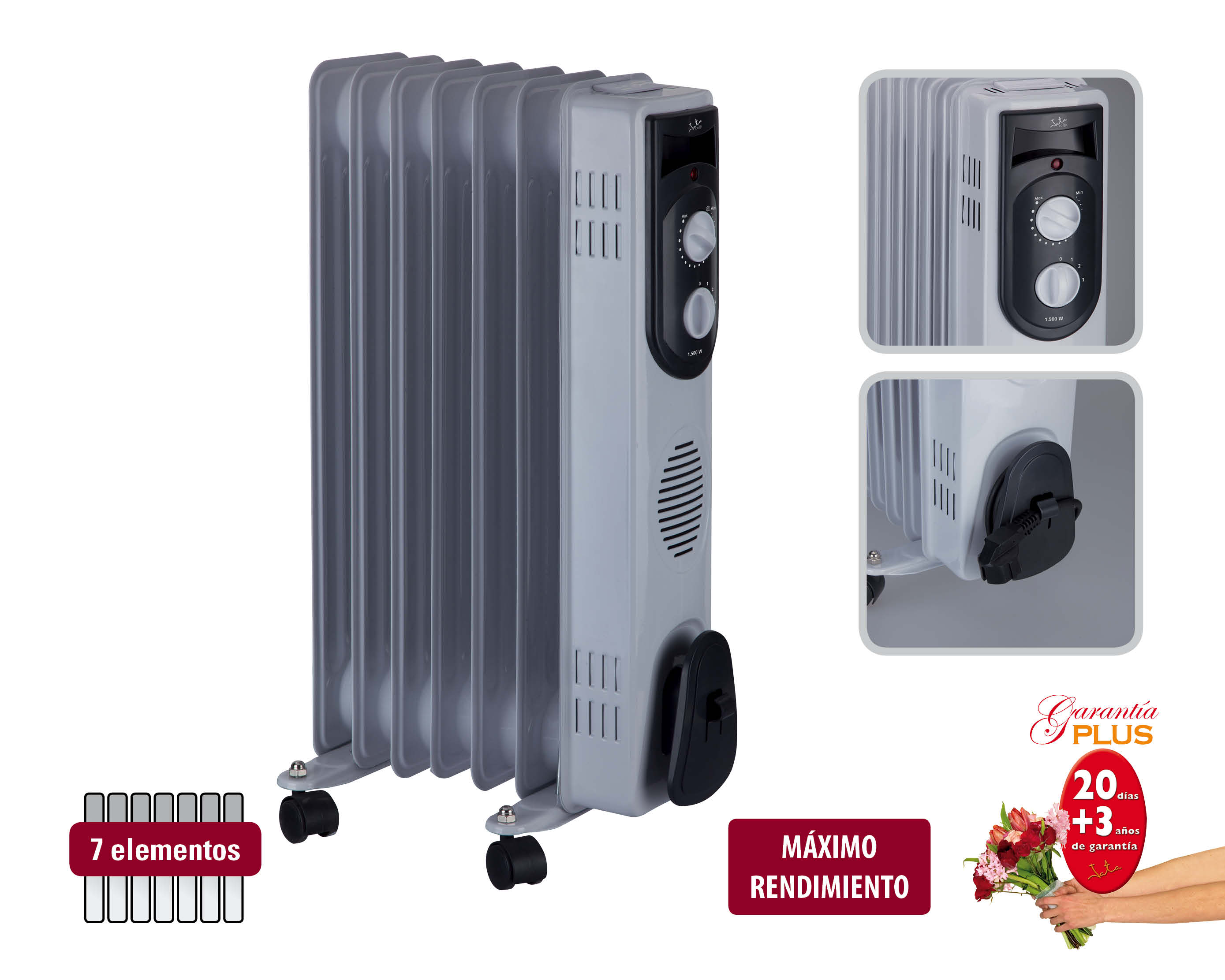 Sisaldab 7 küttimiseleementi, maksimaalne jõudlus. 4-positsiooniline pööratav valija. 3 küttetuge. Keskkonnatemperatuuri reguleeritav termostaat. Ülekuumenemise kaitse. Pöörlevad rattad. Pilootlamp. Juhehoiukarp. Transpordikäepide. Lõhnatu värv. Mõõdud: 38 x 25 x 64 cm. Pinge 230 V. Võimsus 600 / 900 / 1500 W.