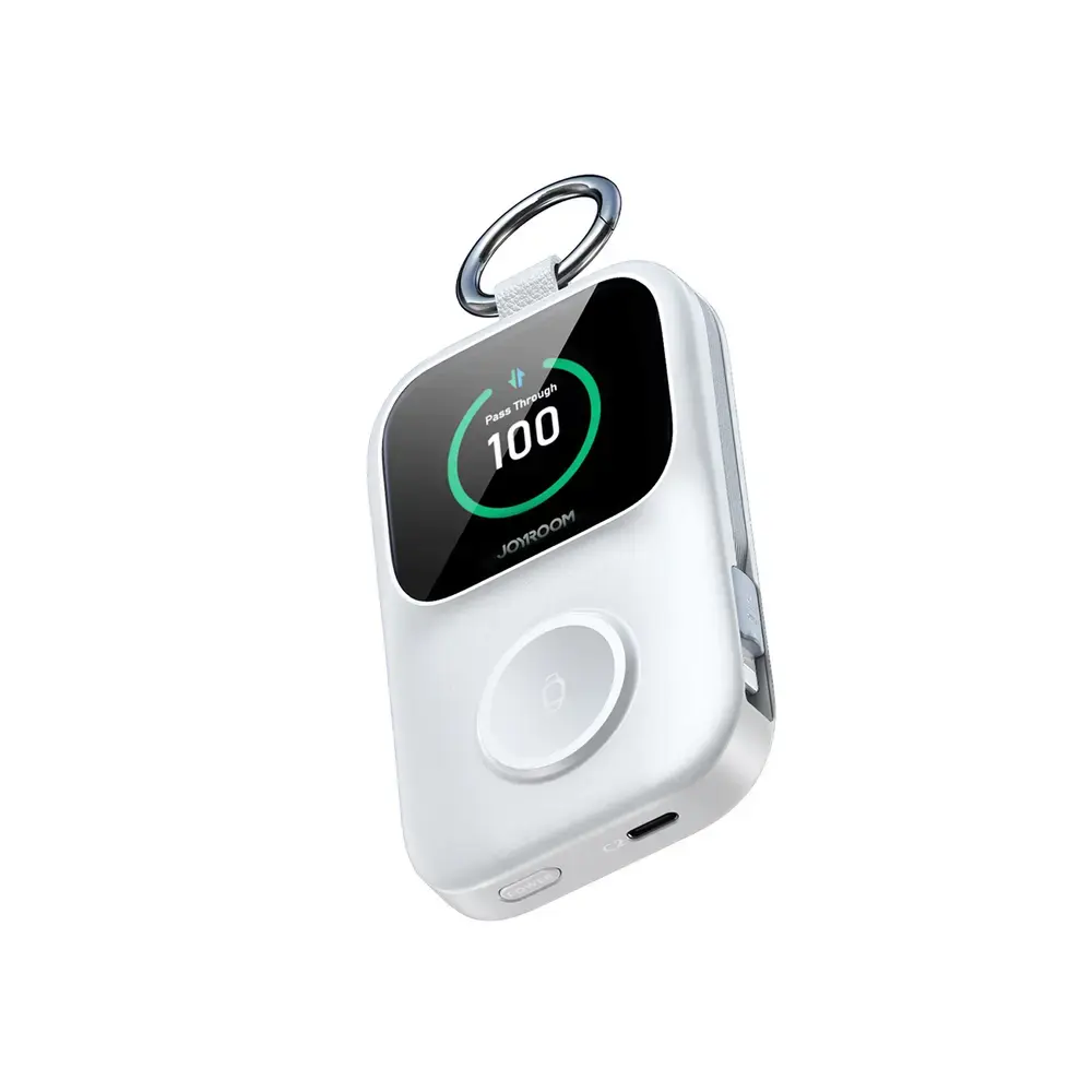 Joyroom JR-W19 5000mAh Powerbank 5W juhtmevaba kellalaadimise – Valge Joyroom JR-W19 on kompaktne power bank, mis on mõeldud nutikellade ja mobiilseadmete mugavaks laadimiseks. Sisseehitatud magnetiline pind lubab kuni 5W juhtmevaba laadimist. Täiendavad USB-C ja Lightning kaablid suurendavad funktsionaalsust ja kõrvaldavad vajadust juhtmete järelt. Selge digitaalne ekraan võimaldab teil jälgida oma energiataset reaalajas. Kompaktne disain, millele on lisatud käepide, muudab selle kergeks kaasaskandmiseks. See lahendus korraldab laadimise ja suurendab kaasaskandmise lihtsust. ~ Spetsifikatsioon: Tootemark: Joyroom Mudel: Joyroom JR-W19 Sisend: USB-C: 5V = 3A; 9V = 2A; 12V = 1.5A Väljund: USB-C: 5V = 2.4A; 9V = 2.2A; 12V = 1.67A USB-C kaabel: 5V = 2.4A; 9V = 2.2A; 12V = 1.67A Lightning kaabel: 5V = 2.4A; 9V = 2.2A; 12V = 1.67A juhtmevaba laadimine: 5W mitmekordne port: 5 V = 3 A Pakendi sisu: power bank Materjal: ABS, PC Värv: valge ~ Joyroom JR-W19 power banki kõige olulisemad eelised: 5W kellalaadimine: mugav juhtmevaba laadimine nutikellale. Sisseehitatud USB-C ja Lightning kaablid lubavad laadimist ilma täiendavate aksessuaaridega. Laadige kuni 4 seadet: toimetage mitut seadet korraga. Digitaalne ekraan: energia taseme ja töise oleku reaalajas jälgimine. Kompaktne disain: lihtne kaasaskandmine tänu väikestele mõõdudele ja käepidemele. ~ Juhtmevaba laadimine lihtsustab kella kasutamist Magnetiline pind võimaldab kiiresti nutikella laadima hakata ilma kaabli kasutamata. Sisseehitatud kaablid suurendavad funktsionaalsust USB-C ja Lightning kaablite olemasolu lubab erinevate seadmete laadimist ilma täiendavate aksessuaaridega. Mitme seadme laadimine parandab mugavust Power bank lubab mitut seadet korraga toimetada, mis on kasulik reisides ja töötades. Digitaalne ekraan lihtsustab energia kontrolli Suur ekraan näitab laadimise taset ja töise olekut reaalajas. Kompaktne disain suurendab mobiilsust Väiksed mõõdud ja käepide lubavad power banki mugavalt igapäevas kaasaskandmiseks.