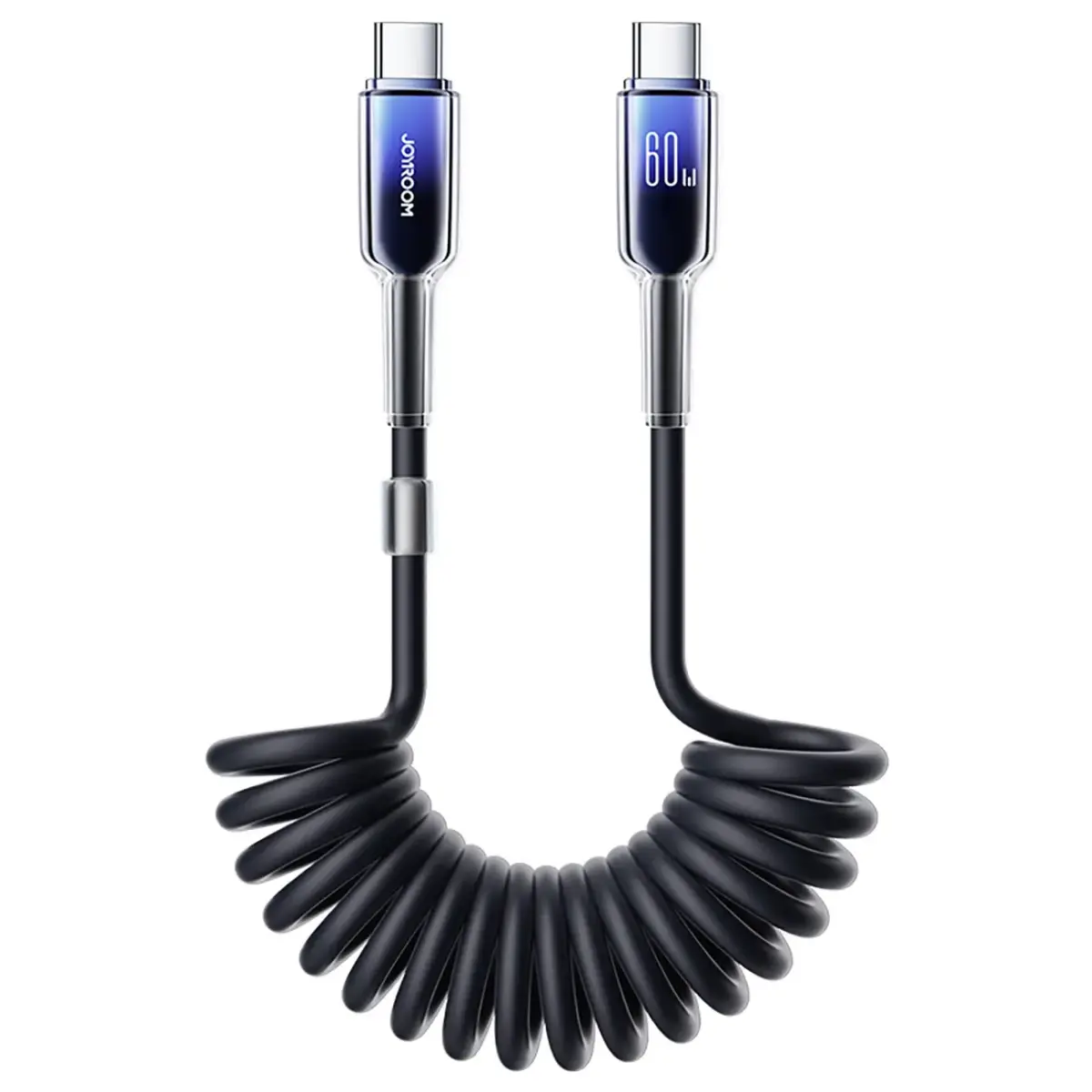 Introducing the Joyroom S-A43 Crystal-Clear Series USB-C to USB-C cable, designed for seamless charging and data transfer. With a robust 60W Power Delivery capability, this cable is perfect for fast charging your devices, including the latest iPhone 15 and Samsung Galaxy models, as well as various tablets. Its innovative spiral design not only enhances flexibility but also prevents tangling, making it an ideal companion for everyday use. The built-in magnetic ring effectively reduces electromagnetic interference, ensuring a stable connection, especially when utilizing CarPlay. Crafted from durable materials, this cable is built to withstand over 10,000 bends, promising long-lasting reliability for all your charging and data transfer needs.