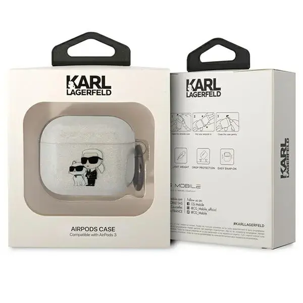 Karl Lagerfeld 3D logoga NFT Karl ja Choupette TPU läikiv ümbris Airpodsi 3 jaoks, valge (KLA3HNKCTGT)