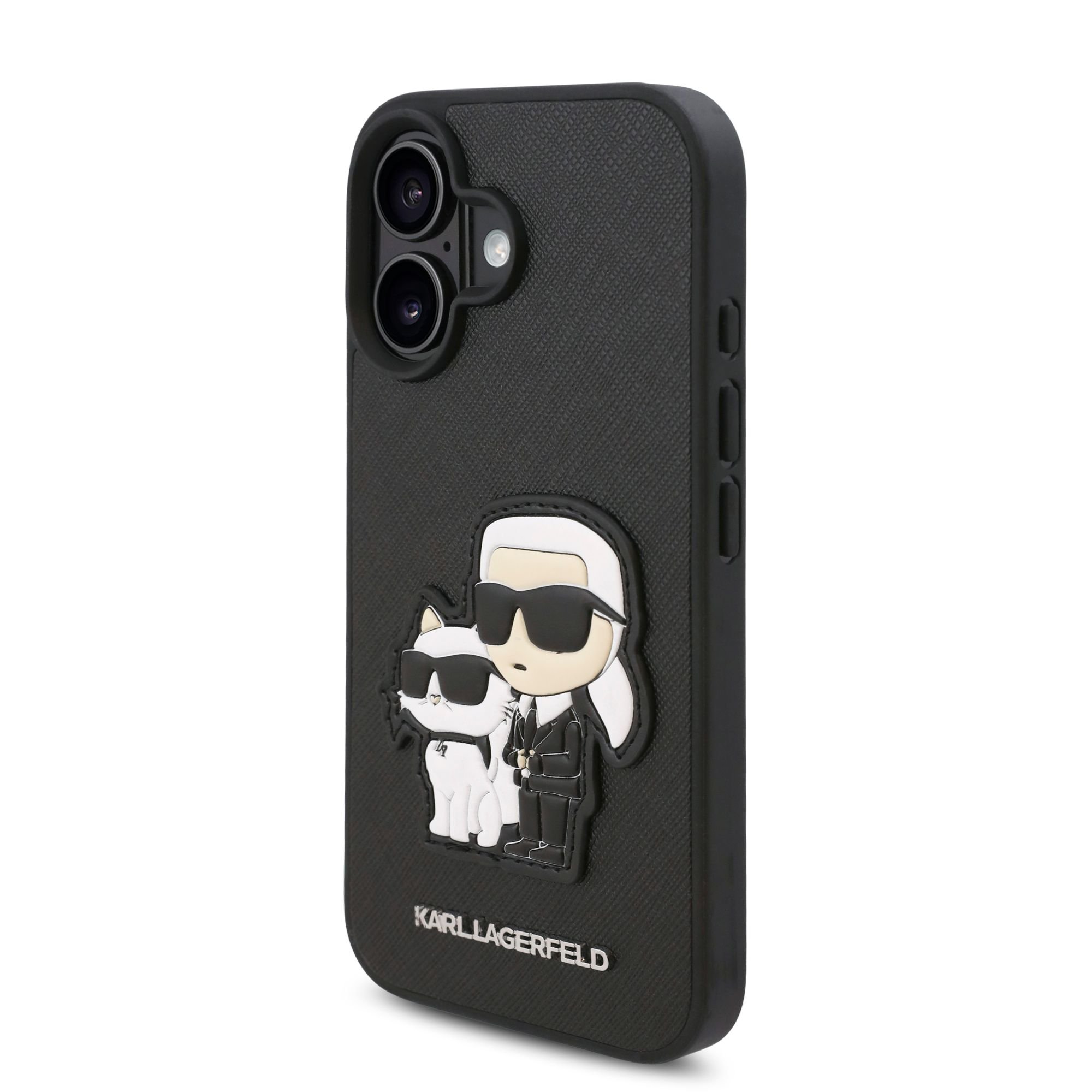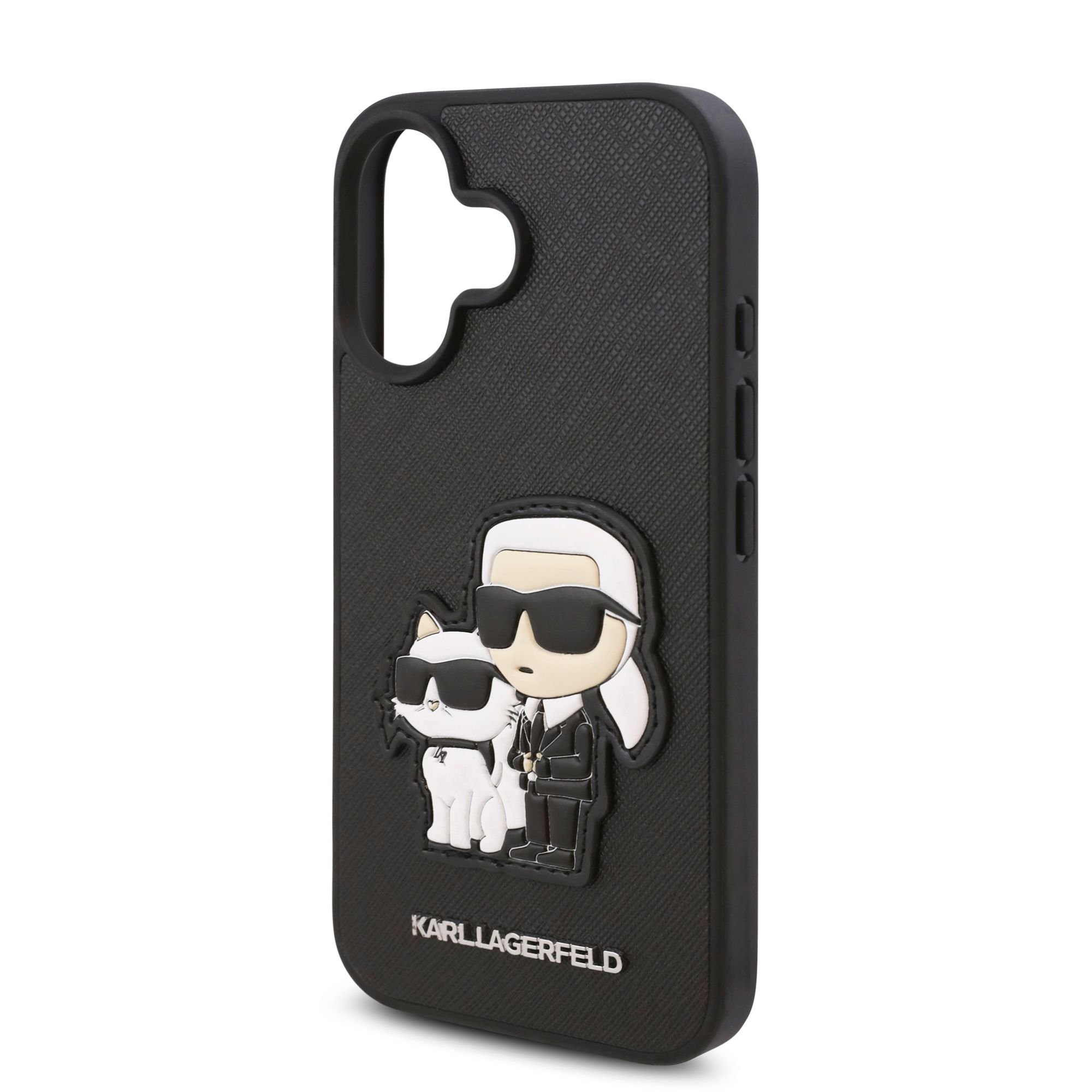 Karl Lagerfeld PU Saffiano Karl ja Choupette kaitseümbrise iPhone'ile 16 Plus / must (KLHCP16MSANKCPK)
