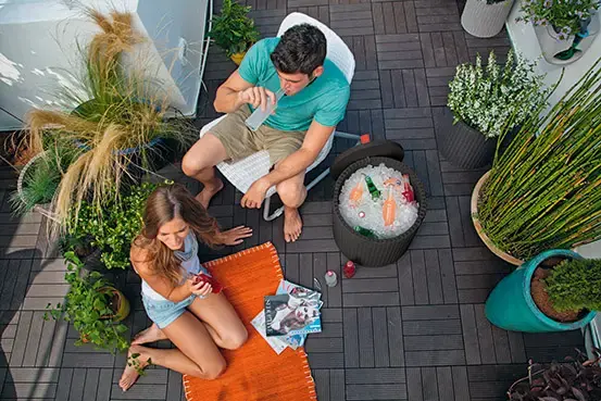 A versatile 3-in-1 bench seating, coffee table and compartments where you can put ice to cool drinks and food in hot weather.