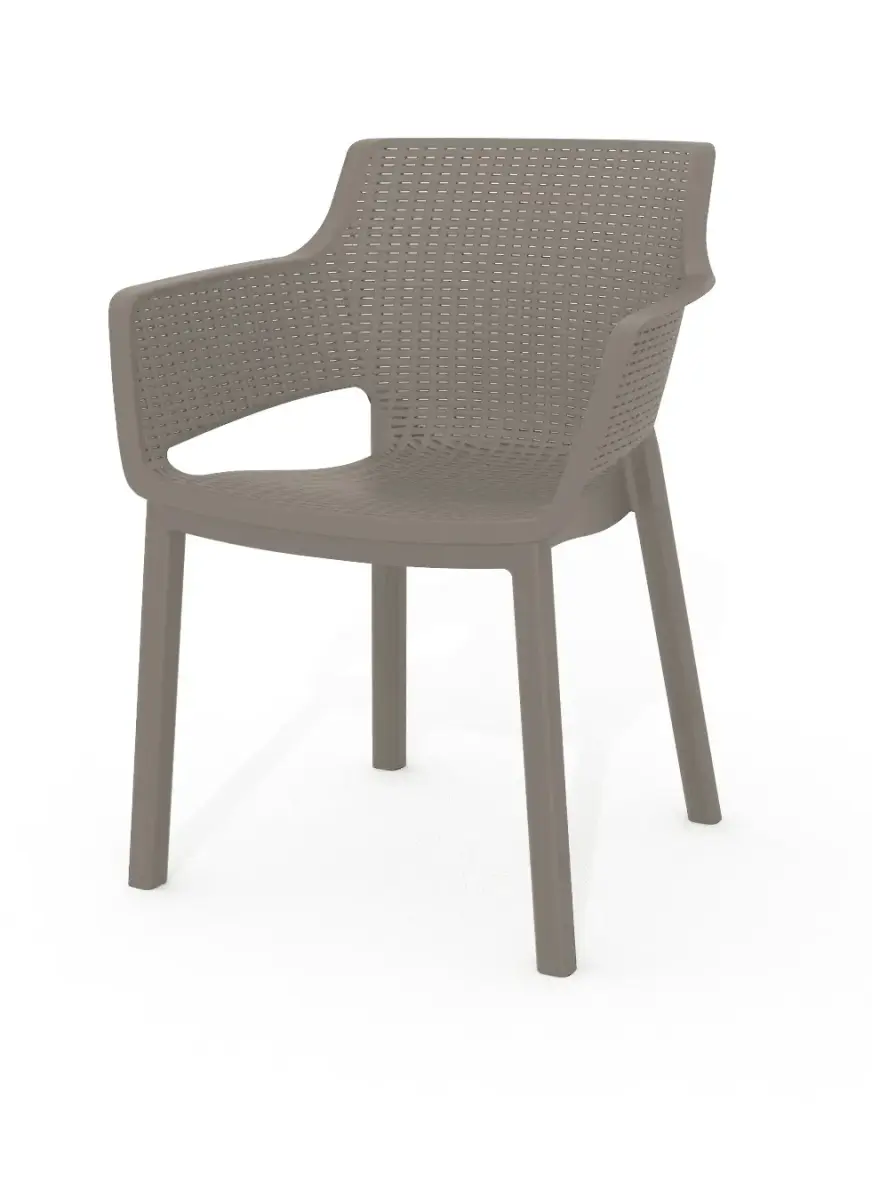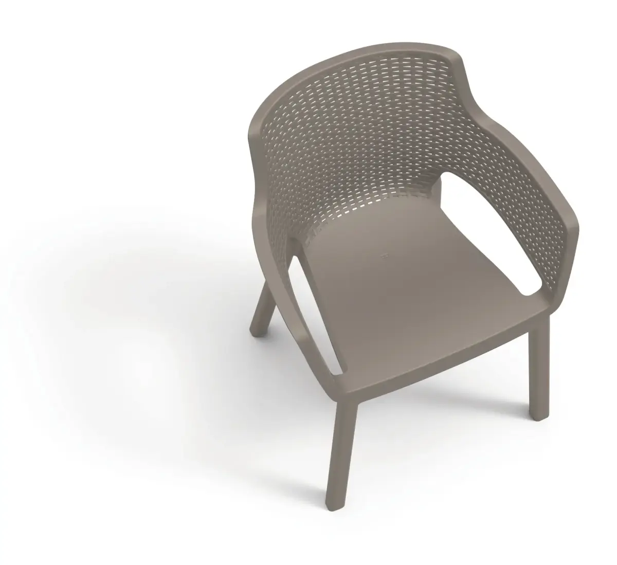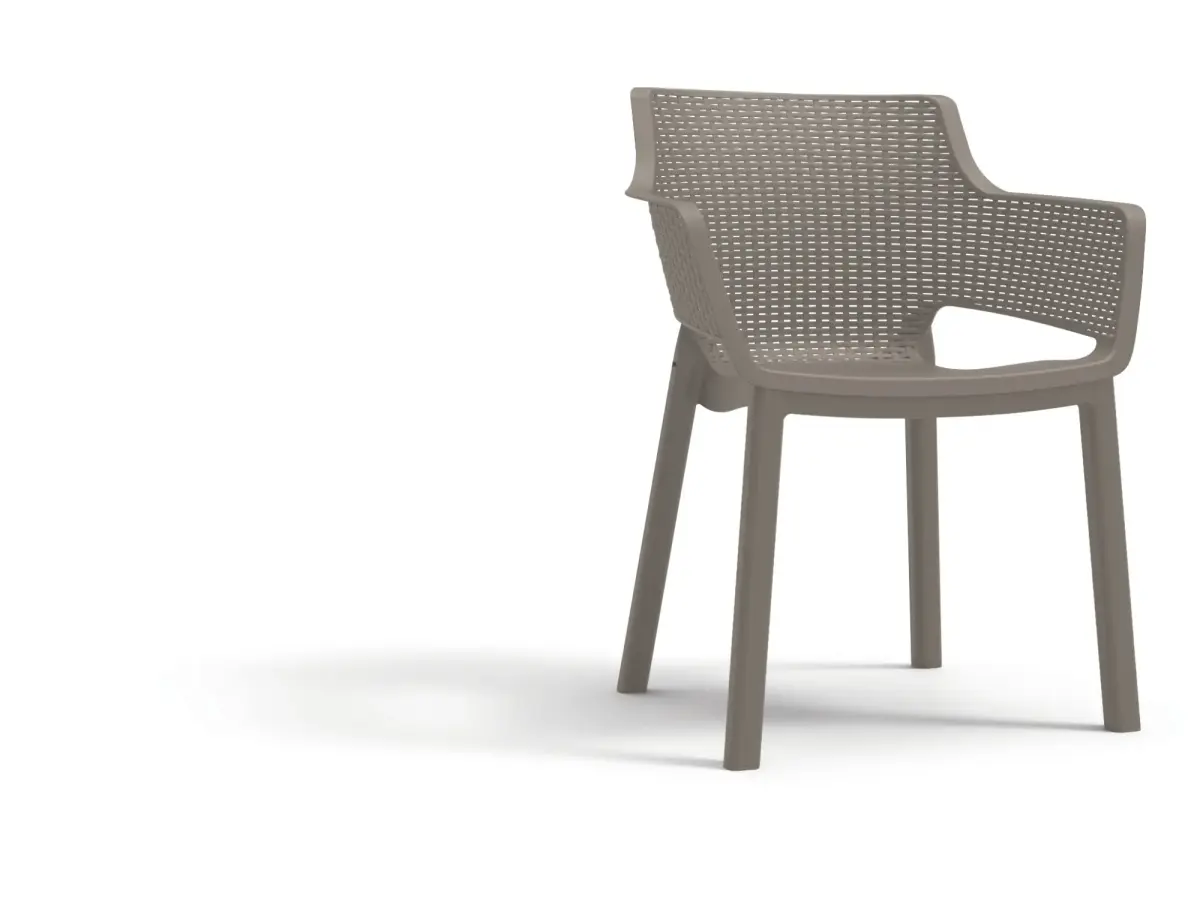 The Eva garden chair has a contemporary look that will fit in well on your terrace or balcony. This chair is made entirely of plastic and is very comfortable.The slightly curved backrest and rounded armrests give you extra comfort. This chair is stackable, so it is easy to store during the winter months. Choose a stylish garden table and assemble your own garden set.The product is characterised by its high resistance to bad weather conditions.Cleaning: use a cloth dampened in lukewarm water with a little detergent