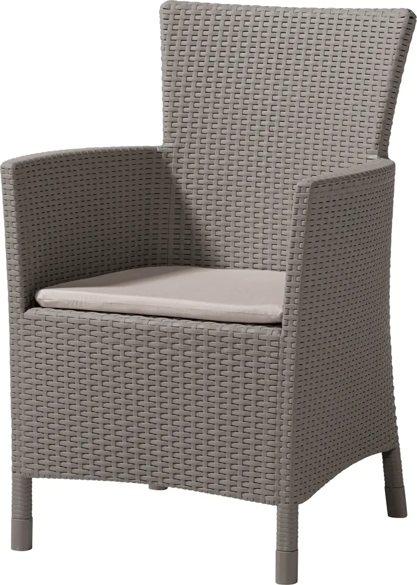 Iowa is an elegant and comfortable garden chair, available with a cushion.The rich colour range and the original rattan weave will satisfy the tastes of even the most demanding users.Made of UV- and weather-resistant, high-quality plastic. The product is very easy to assemble and maintain.Size: 62 x 60 x 89cmPacking size: 80 x 60 x 21cmWeight: 5.2kg