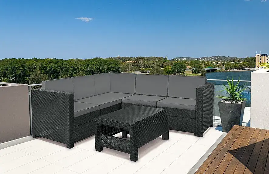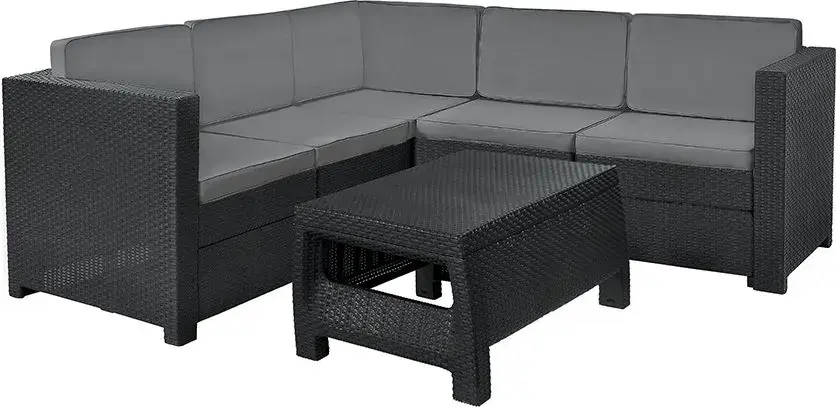 Unique and efficient Provence set consists of a corner sofa and a table. The natural look of the furniture is inspired by rattan furniture. The surface structure is resistant to moisture and UV rays, which guarantees the durability of the set. The Provence set is perfect for a garden or terrace seating area.