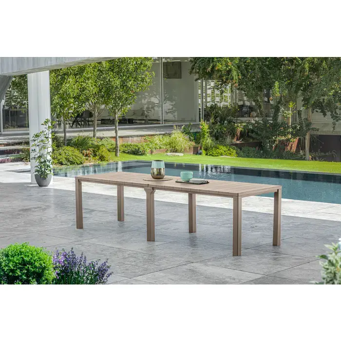TheJulie Double Folding Table is designed for special occasions.It is the only table Keter offers that allows it to be used in 3 different configurations: as a small rectangular table for 6 people; a large rectangular table for 8-10 people; and a square table for 8-10 people. The main value of this table is its maximum possibilities and ease of use.With the Julie Double table you will be able to fill large spaces such as spacious garden terraces. This great table will gather large families and nice parties of friends around it.The product is made of durable high-quality plastic that is weather and UV resistant. It is easy to care for and will not require any effort on your part.Size:Square: 147,5 x 180 x 74,5cmrectangular: 295 x 90 x 74,5cmPackage size: 149x92x21cmWeight: 20.8kg