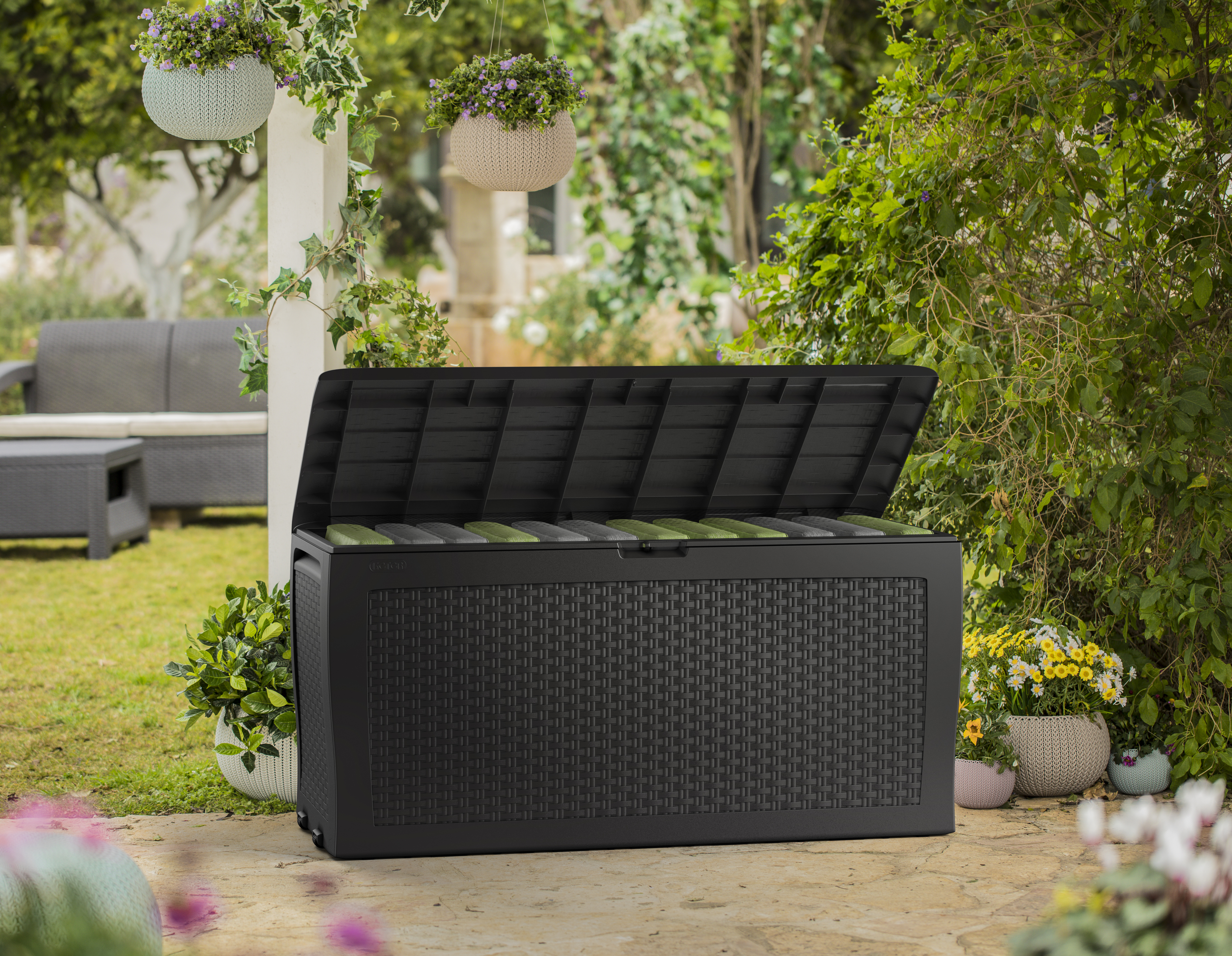 Ilmastikukindlas Keter Samoa punutud disainiga hoiukastis on tänu 270 l mahutavusele hea aiapatju või muid esemeid hoida. Tugev ja vastupidav hoiukast on valmistatud kvaliteetsest PP-plastist ning see ei kõdune ega roosteta ja ei vaja seetõttu peaaegu mingit hooldust, mis muudab selle ilmastikukindlaks. Lisaks on padjakasti ilma tööriistadeta lihtne kokku panna ja sellel on integreeritud rattad, mis hõlbustavad liikumist. Värvus: antratsiithallMaterjal: PP (polüpropüleen) plastVälismõõtmed: 117 x 45 x 57 cm (L x S x K)Sisemõõtmed: 114,4 x 40 x 51,2 cm (L x S x K)Maht: 270 lIlmastikukindelIntegreeritud rattadPunutud disainToote mõõdud: Pikkus: 0.45 Laius: 1.17 Kõrgus: 57 cm Kaal: 7.75