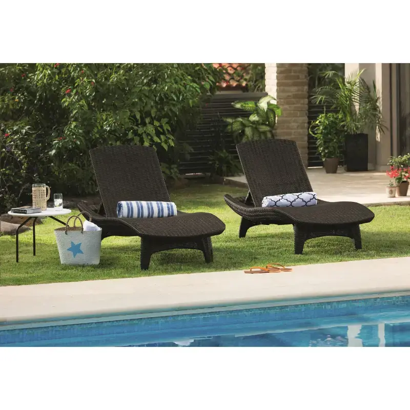 The elegant Pacific Set + Table consists of two sophisticated sun loungers and a compact table on which you can place refreshing drinks or accessories.The set has an elegant design, a unique shape and a sturdy construction. The comfortable backrests of the sun loungers allow you to enjoy maximum relaxation in the tranquillity of the garden.An important advantage of the product is its resistance to adverse weather conditions as well as UV radiation. The furniture is easy to care for.Size:Chair: 197 x 75 x 40.4cmtable: 38 x 38 x 36cmPackage size: 199 x 76 x 34cmWeight: 31.3kg