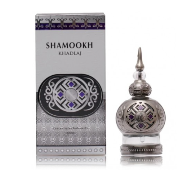 Khadlaj Shamookh Silver 20 ml is a unisex perfumed oil featuring a refined scent that blends fresh citrus and green notes, soft florals and a warm woody-musky base. The lightweight oil texture delivers long-lasting fragrance on skin and clothing, creating a sense of freshness, elegance and confidence.