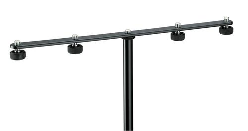 Connects to top of mic stands for holding 4 microphones or boom arms. 3/8" locking screws.König & Meyer 23600-300-55. Product colour: Black, Material: Steel. Height: 365 mm, Weight: 300 g