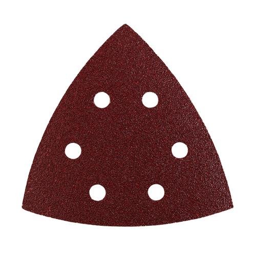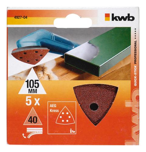 Delta sanding discs, 105mm, for wood and metal, aluminium oxide abrasive coated, phenolic resin bonded, strong backing, with hook- and-loop fabric backing, punched, for use with delta/detail sanders, for sanding metal and wood, paint, varnish, filler, kwb 492704. Quantity per pack: 5 pc(s)
