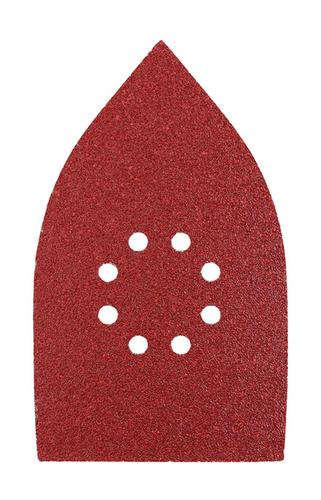 Triangular sanding discs for wood and metal, aluminium oxide coated, 107 x 175mm, resin bonded, strong backing material, with hook and loop backing, punched, for delta/triangular sanders, for sanding metal and wood, paint, varnish, filler, stone and plastkwb 493424. Quantity per pack: 5 pc(s)