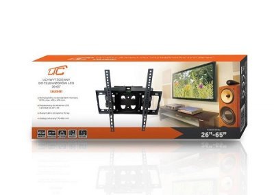 The Lamex LXLCD131 is a wall-mounted swivel bracket suitable for TVs with screen sizes from 32 to 65 inches. It provides secure mounting with tilt and swivel adjustments for optimal viewing comfort. Technical Specifications: Fits TVs: 32" – 65" Maximum load: 50 kg VESA compatibility: 100x100 mm – 400x400 mm Tilt adjustment: +4° to -10° Swivel: up to 180° Distance from wall: 5 – 50 cm Material: steel Color: black Warranty: 2 years