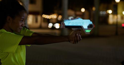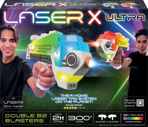 Laser X Evolution Blaster to Blaster - Laser is the #1 Home Laser Tag System on the planet! Laser X Evolution is like having a laser tag arena in your own backyard! Shoot opponents from up to 300 feet away – indoors or outdoors, in the dark or bright sunlight. Choose from over 20 team colors to light up your blaster!