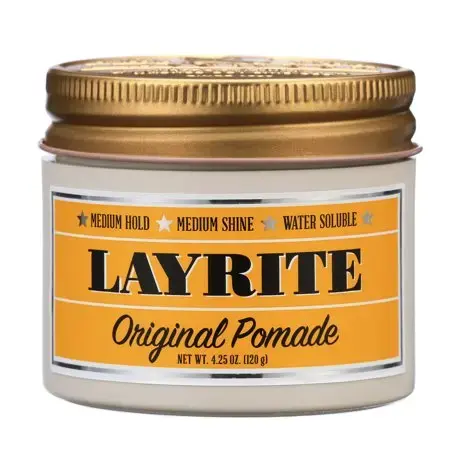 You discover Layrite Original Pomade 120g:n · Provides medium hold with brilliant shine.n · Water-based formula washes off easily with no residue.n · Ideal for different styles, offering flexibility and control.