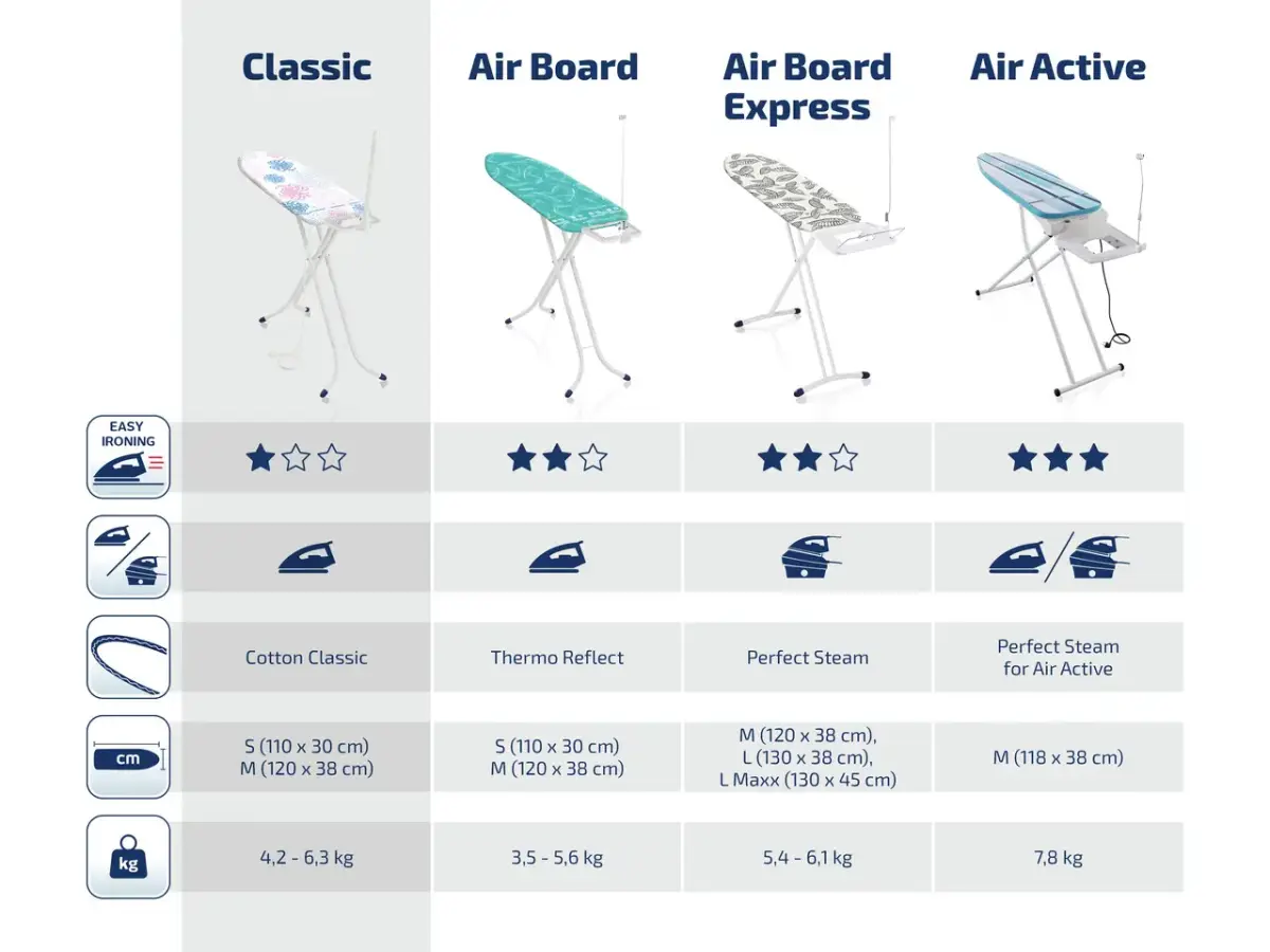 iron tray for positioning the iron. Ironing board with adjustable height: