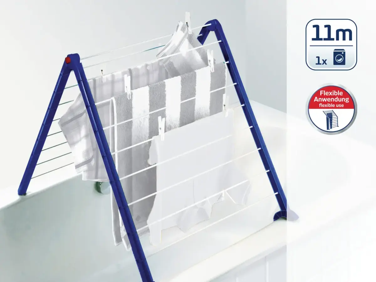 The plan is to hang out the laundry on 11m. To be fixed in 12 positions. For delicate laundry, the dryer can be mounted in a horizontal position. 3 year warranty.Size: 67cm