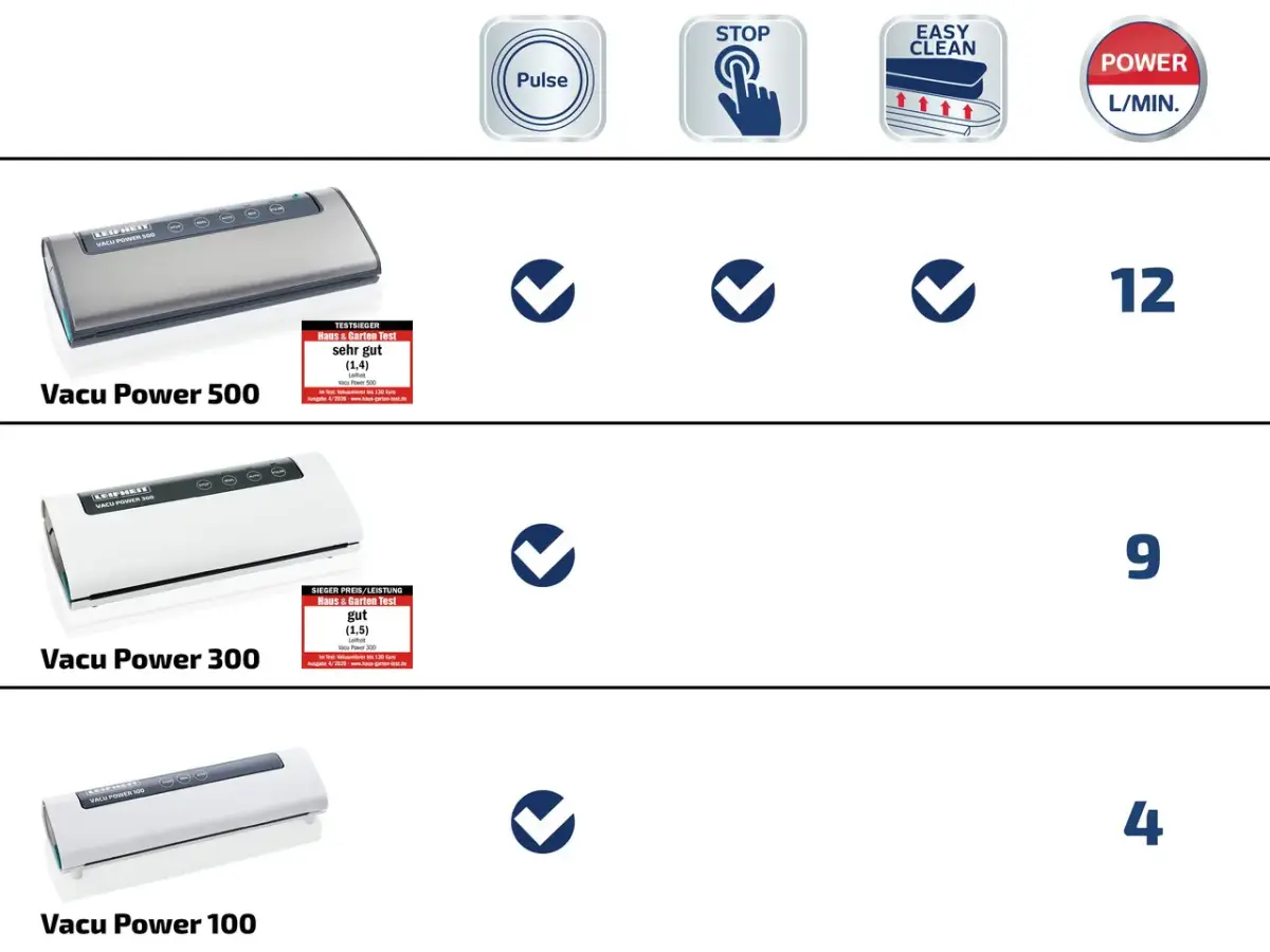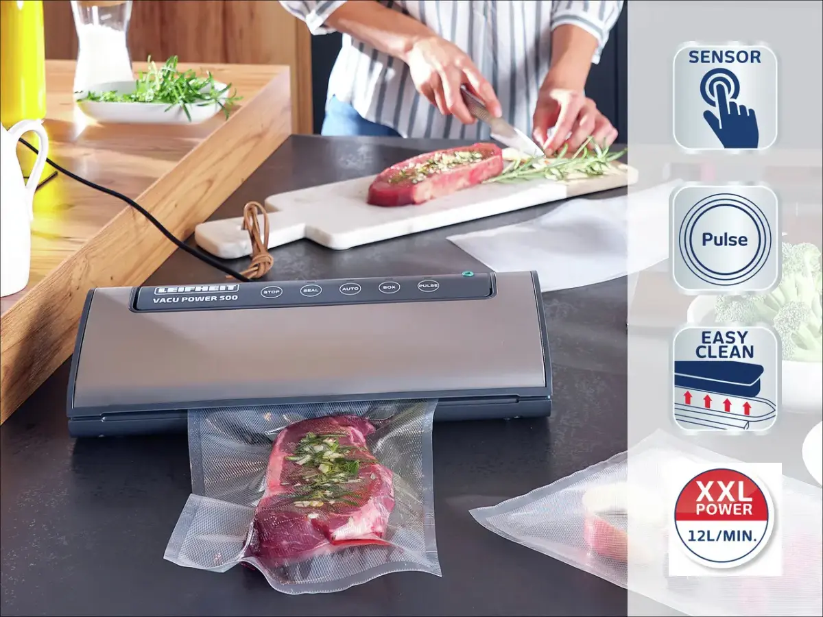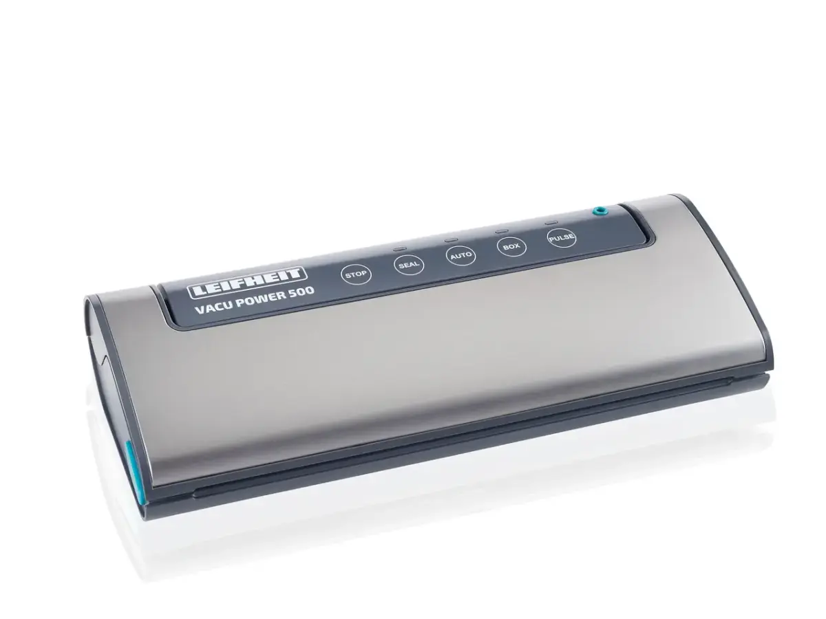 VacuPower 500 vacuum device +(10gb vacuum bags 20*30cm)- fully automatic, electric vacuum device for vacuuming food products.Food stays fresh up to 8x longer under vacuum. 30 cm long heat bonding strip.Ideal for fish, meat, vegetables and fruit. Food retains vitamins and minerals longer in the vacuum. Speeds up the marinating process. Soft berries and fruit can be vacuumed using the vacuum stop button.Power: 120W; 12L/minSize: 38 x 17.00 x 9.00 cmPackage size: 40.00 x 21.5 x 10cm