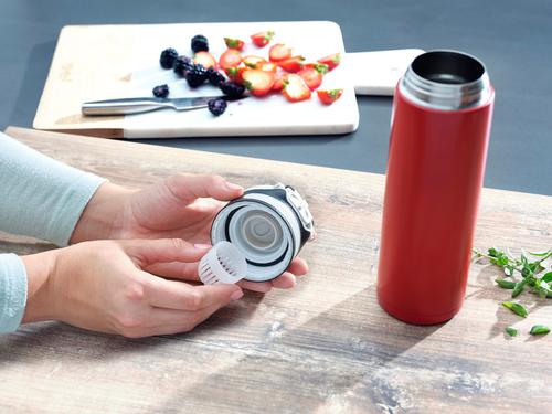 Leifheit 03273. Toote värv: must, punane, kaane materjal: roostevaba teras, sisemine materjal: roostevaba teras. Mahutavus: 600 ml