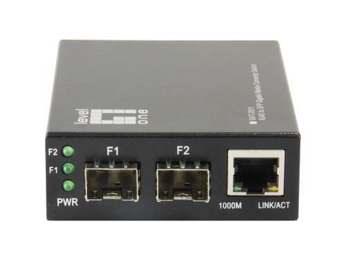- 10°C to 55°C operating temperature rangeLevelOne RJ45 to SFP Gigabit Media Converter Switch, 2 x SFP, 1 x RJ45. Maximum data transfer rate: 1000 Mbit/s, Converter input interface: 10Base-T, 100Base-TX, 1000Base-T, Converter output interface: 1000Base-X. Fiber optic connector: SFP, Connectivity technology: Wired. Mean time between failures (MTBF): 30000 h. LED indicators: Activity, Link, Power, Product colour: Grey, Country of origin: China. Input voltage: 110 - 240 V, Output voltage: 5 V, Output current: 2 A