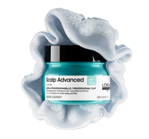 L’Oréal Professionnel Scalp Advanced Anti-Oiliness Professional Clay 2-1 Shampoo & Mask Deep Purifier 250 ml - professionaalne 2-1 šampoon ja mask, mida on loodud rasva kärnale ja juustele. Selle koostis sisaldab Sebulyse™ ja mineraalset klibit, mis sügavalt puhastab, puhastab ja reguleerib sebumi tootmist, samuti hoolitseb ja tasakaalustab kärna. Jättab juustele hea, puhtalt ja hoolitsevalt kärna.