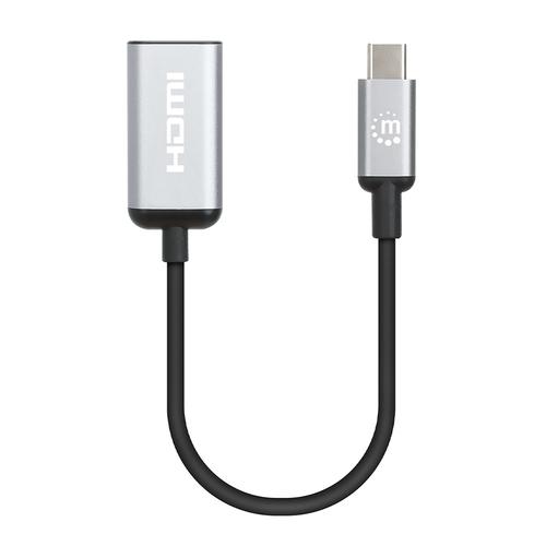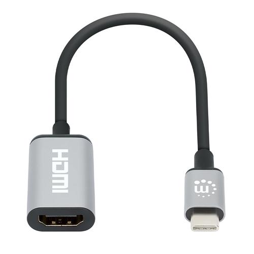 Manhattan 153706 videokaabeladapter 0,15 m USB Type-C HDMI Type A (Standard) Must, Hõbe