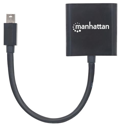 Manhattan Active Mini DisplayPort to DVI-I Adapters establish a fast and convenient connection between a media source equipped with a Mini DisplayPort and a DVI display cable. This active adapter overcomes the non-DP++ (dual-mode) video/graphics card's limitations and converts the signal to display. It is ideal for multi-screen gaming, digital signage in retail displays, financial market and other applications. Nickel-plated contacts and full shielding help Manhattan Active Mini DisplayPort to DVI Adapters provide clear and stable video transmissions in UHD, home and office multimedia applications. Durable PVC jackets and moulded boots with strain relief help ensure connections remain uninterrupted and steady.Manhattan Mini DisplayPort 1.2a to DVI-I Dual-Link Adapter Cable (Clearance Pricing), 4K@30Hz, Active, 19.5cm, Male to Female, Compatible with DVD-D, Black, Three Year Warranty, Polybag. Cable length: 0.195 m, Connector 1: Mini DisplayPort, Connector 2: DVI-I. Sustainability certificates: RoHS. Weight: 30 g, Width: 45 mm, Depth: 15 mm. Quantity per pack: 1 pc(s), Package type: Polybag. Cable colour: Black