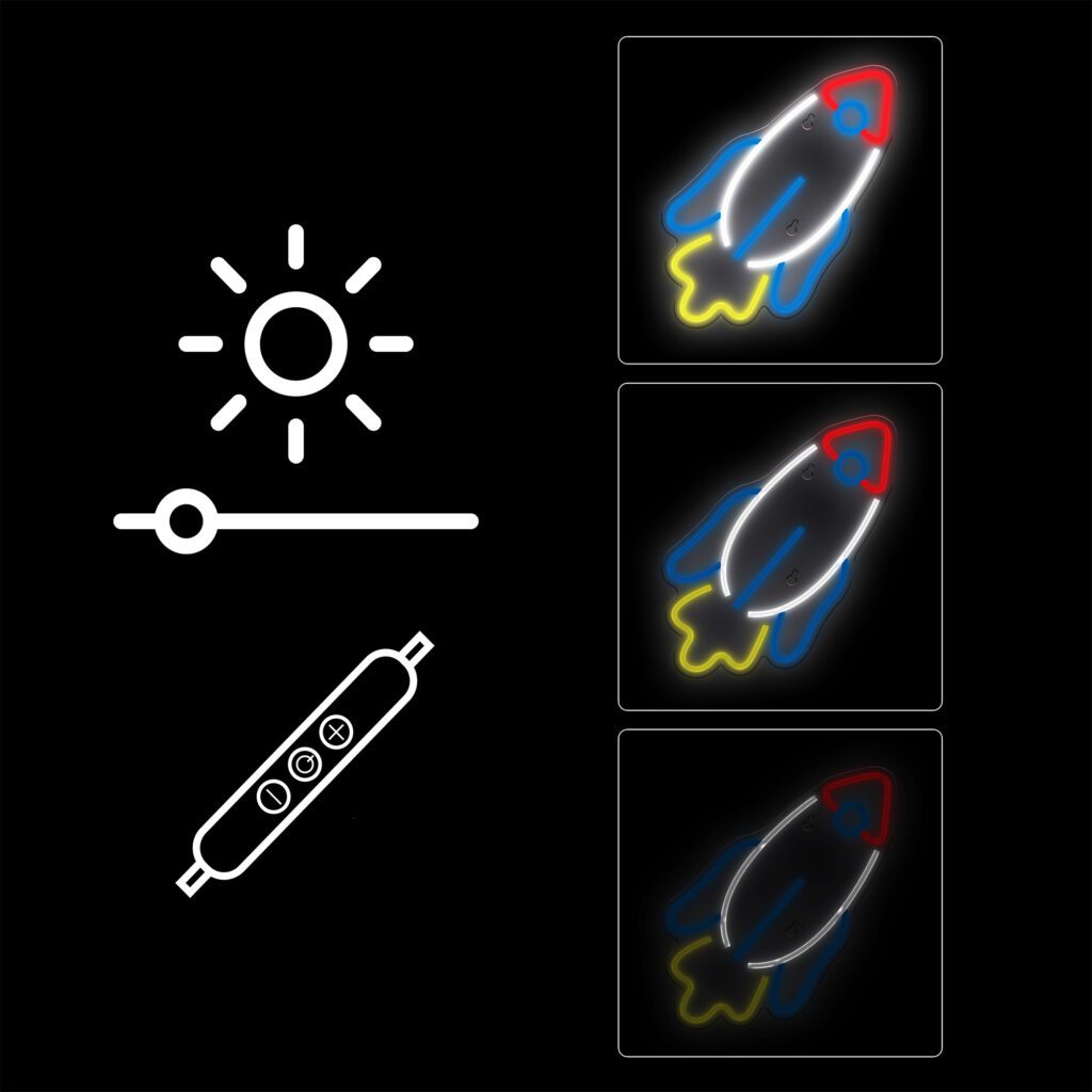 Convenient USB power supply – allows you to connect the lamp to a computer, powerbank or standard phone charger The use of colorful LED wires – thanks to which the colors are more intense and the neon has a decorative function, even when it is not on Convenient switch and brightness regulator 2-meter long power cable Neon mounted on a plexiglass base LED technology ensures energy efficiency