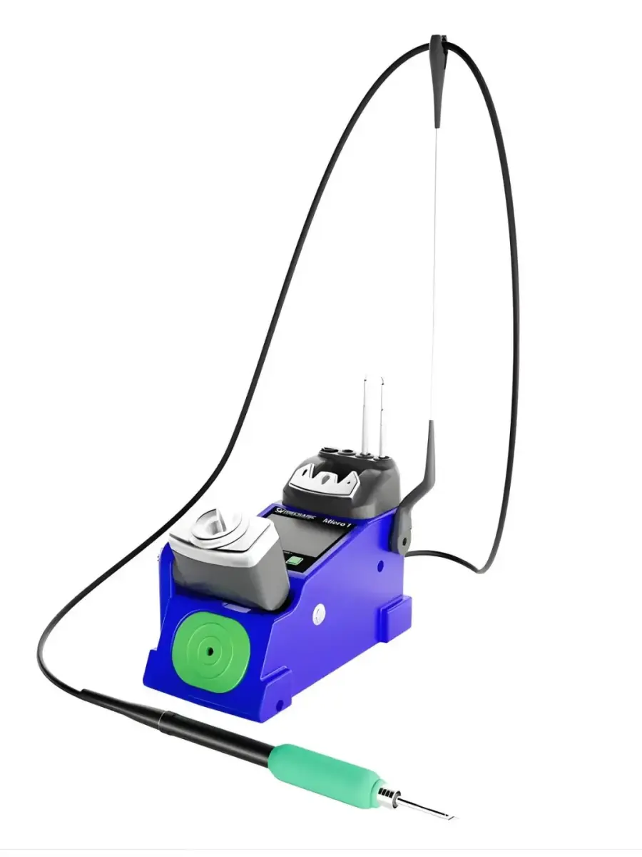 The MECHANIC MICRO 1 is the perfect solution for technicians requiring extreme precision in a compact format. Specifically developed for handling the smallest components on the market, this station supports C115 series tips, essential for "jumper" work and pad reconstruction under a microscope. Its advanced heating technology allows it to reach 350°C in just 2 seconds, ensuring immediate efficiency. Its minimalist design does not detract from its professional capabilities: it offers perfect thermal stability and total antistatic protection for handling the most sensitive smartphone motherboards. The MICRO 1's ergonomics are designed for productivity. Its integrated magnetic iron holder intelligently manages the standby mode, instantly cooling the tip to extend its lifespan and reheating it as soon as you pick it up. The high-visibility OLED screen displays the real-time temperature, allowing absolute control over your soldering environment. Whether for an optimized main workbench or a portable backup station, the MECHANIC MICRO 1 stands out as a precision tool for modern microelectronics. Workshop Tips & Usage: