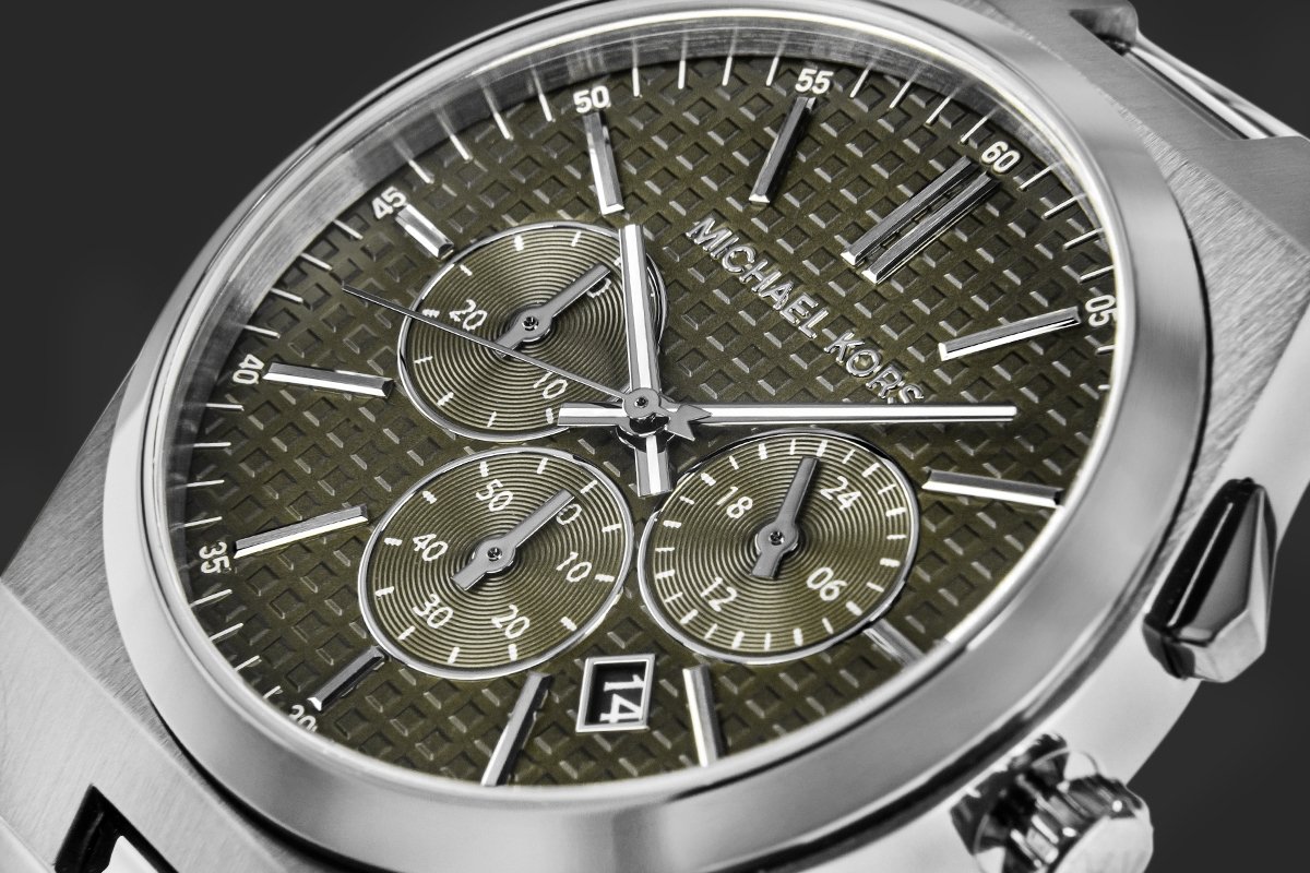 watch men's MICHAEL KORS Lennox MK9118 Product description: • Brand: Michael Kors • Reference: MK9118 • Model: Lennox • Movement: Quartz • Dial: Analog with chronograph • Case: Stainless steel • CRYSTAL: Mineral • And: Luminous Hands • Bracelet: Stainless steel • Water resistance: 5 ATM • Hypoallergenic: Yes - nickel-free • Case: 41/51 • Dial diameter: 35 • Thickness: 11 • Bracelet width: 22 • Bracelet Wrist circumference: max 205 Colorway: • Case: grey • Dial: olive green • Logo on the dial: grey • hour markers: grey • Hands: white-gray luminescence • Second hand: grey • Crown: grey • Bracelet: gray watch MICHAEL KORS – STYLE, which and SELF confidence