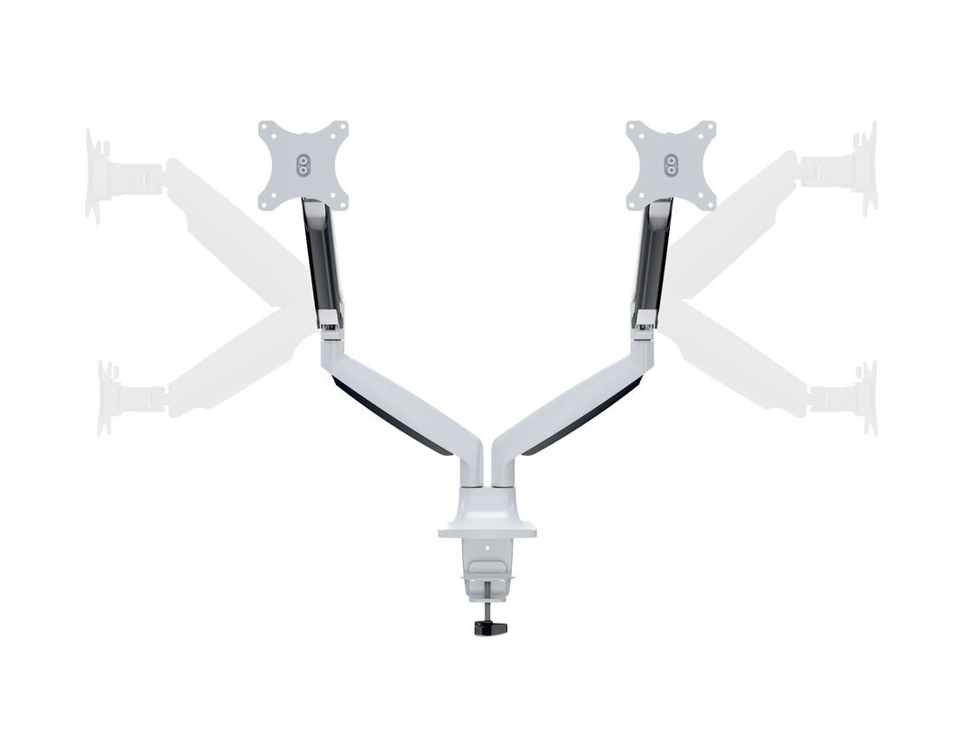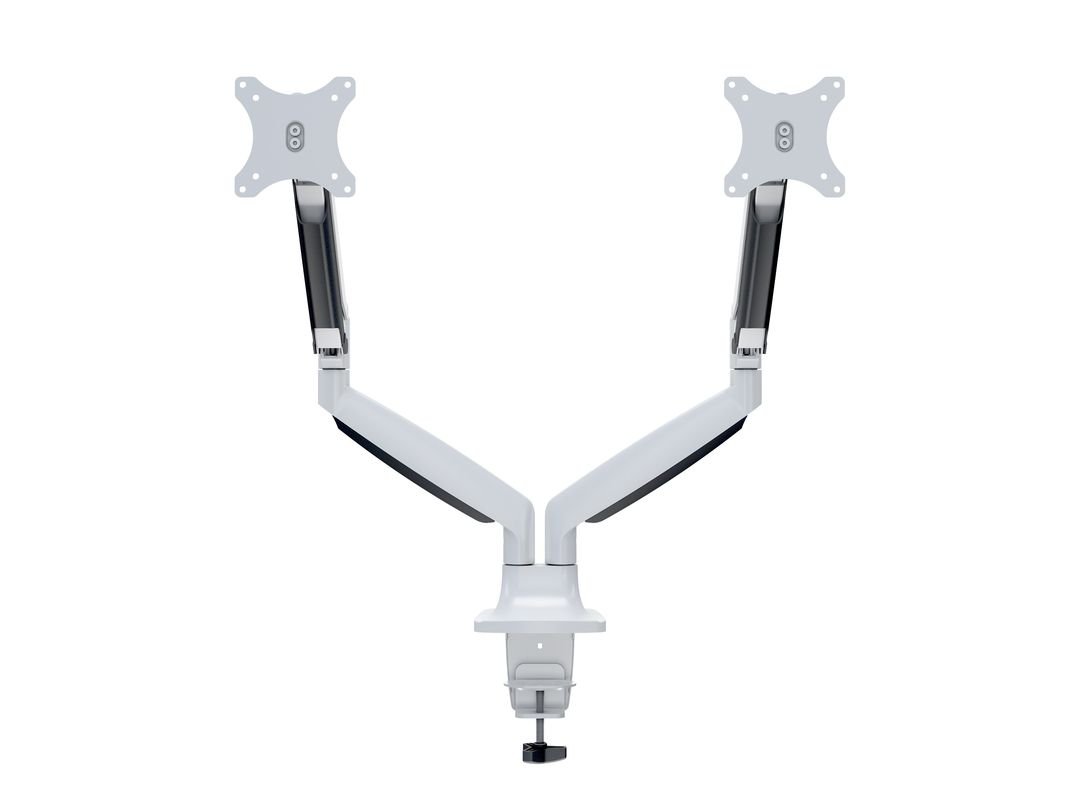 Color: whiteScreen Size: 15-27"Universal & VESA standard: 75x75 100x100 mmMaterial aluminum, steelWeight 6 kgMaximum load: minimum load: 1 kg - maximum load: 9 kgAdjustable height from the tabletop to the center of the VESA plate: 170 - 505mmTilt: yesFor desktop width: 10 - 85 mm