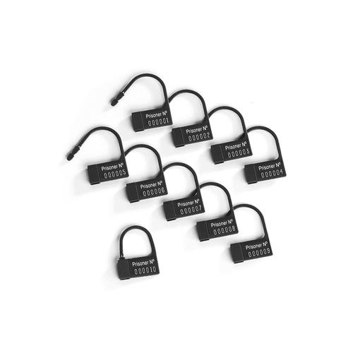 No way of escaping: A metal lock with engraved Mystim emblem and a set of five plastic disposable seals would convict you immediately. And we thought about forgetful subs with a stack of signs including the writing "Hands off! This prisoner belongs to ___". Sliding into the cock cage holder, each plate reminds you to whom the contents of the cage belong.Mystim 46621. Product type: Penis chastity, Product colour: Transparent, Material: Plastic, Silicone. Width: 33 mm, Height: 82 mm. Quantity per pack: 1 pc(s)