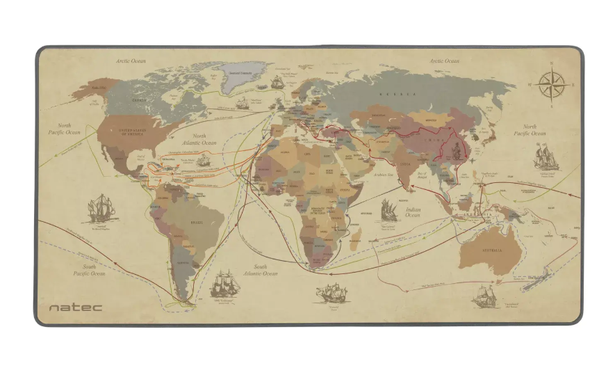 Natec Avastused Multikooler on XXL-kohalik toa laudkapp, mis on mõeldud nii teie klaviatuuri kui ka hiirakett kõrvaldamiseks. Selle dimensioonid on 800 × 400 mm ja selle paksus on umbes 3 mm, mis pakub rohust pinda, mis kaitseb teie toa ja lubab teile palju vabadust hiirakett kasutada. Ülemkiht on tekstiil/fabriik, mis on veekindel ja on optiliste ja laserhiirakettide täpsuse jälgimiseks optimeeritud. Alakülg on mittehülgiv kummikapp, mis hoiab lauda tugevalt kohal. Tema tõhusaim omadus on mitmekülgne graafiline disain, mis kujutab maailma kaarti ja ajastu suuri geograafilisi avastusi ajastu, mis teeb selle nii funktsionaalseks kui ka stiilseks.