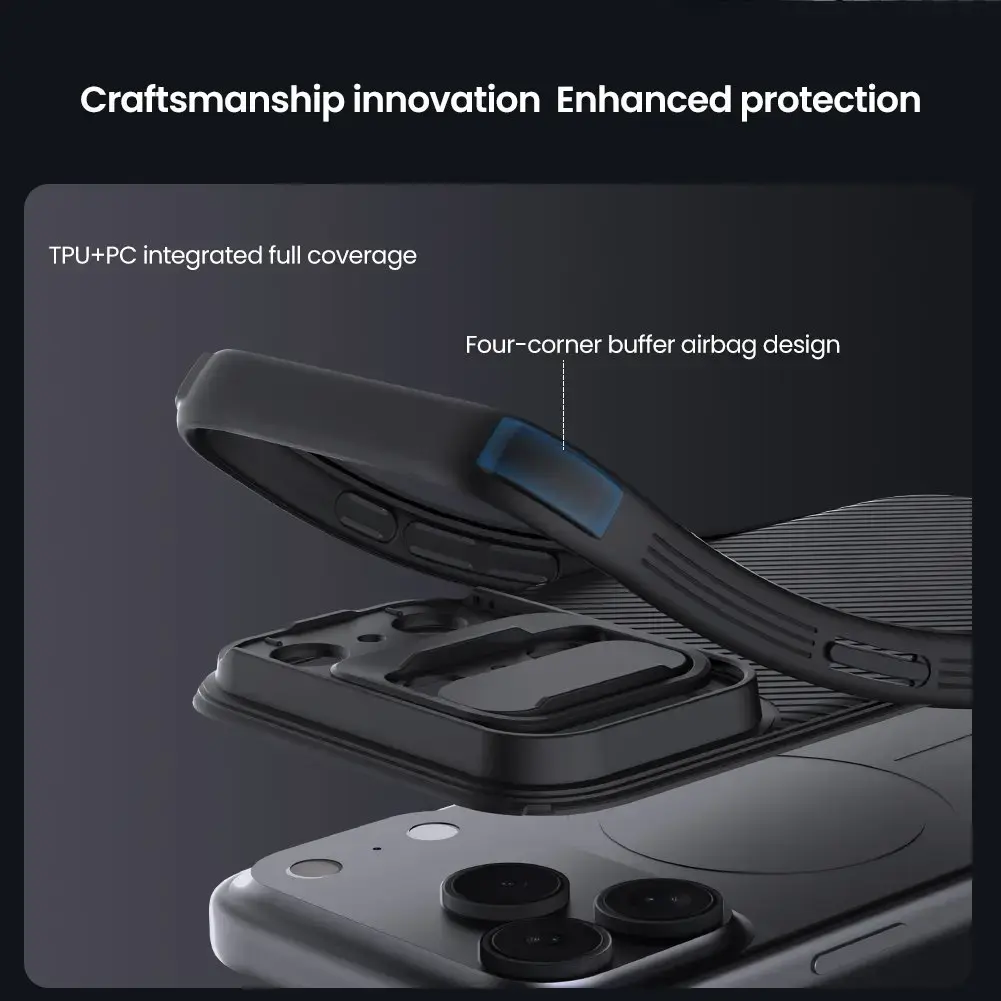 Nillkin CamShield PRO ülemine kaitseümbris Apple iPhone'i 17 Pro Max sinises värvuses (57983127571)